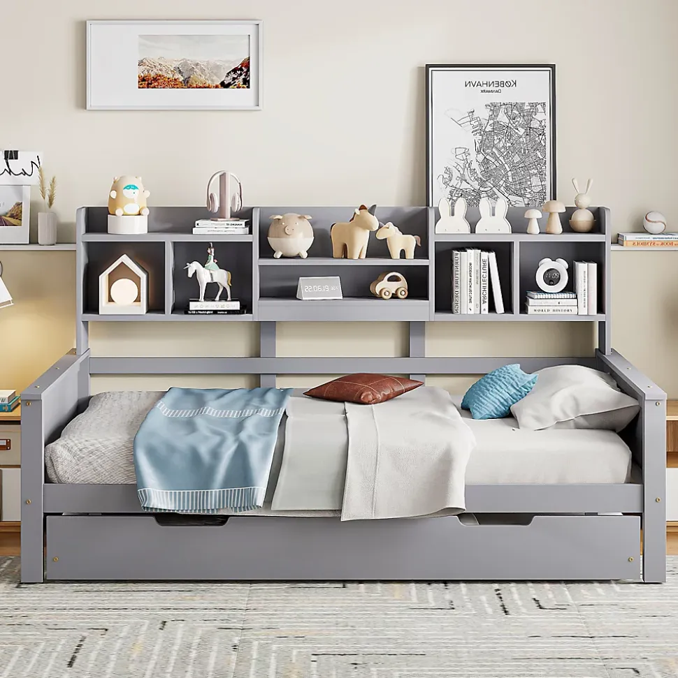 ▶ ▶ Détails ▶────────────────● Type de produit : Lit gigogne● Dimensions du produit : 200 x 97 x 110 cm● Dimensions du lit extensible : 90 x 190 cm● Couleur : Gris● Matériau du produit : Bois de pin + Contreplaqué + MDF● Poids total du produit : 44,2 kg● Capacité de poids : 120 kg● Épaisseur de matelas recommandée : 8-12 cm● Montage : Montage complet nécessaire / Montage partiel possible● Poids total de l’emballage : 48,2 kg● Nombre de lattes : 26● Outils supplémentaires requis : Tous les outils sont inclus (tournevis)● Évitez d’utiliser des outils électriques : Oui● Nombre de colis : 2► Remarques ►※ Ce produit est expédié en 2 colis, qui peuvent ne pas arriver en même temps. Merci de patienter.※ En raison de la mesure manuelle, un écart de 2 à 3 cm peut se produire.※ Tous les images du produit sont prises avec des produits réels, mais en raison de l’éclairage et d’autres facteurs, des différences de couleur peuvent se produire. Veuillez vous référer au produit effectivement reçu.※ La longueur est la valeur avant et la largeur est la valeur des côtés. La taille exacte dépend de l’image.
