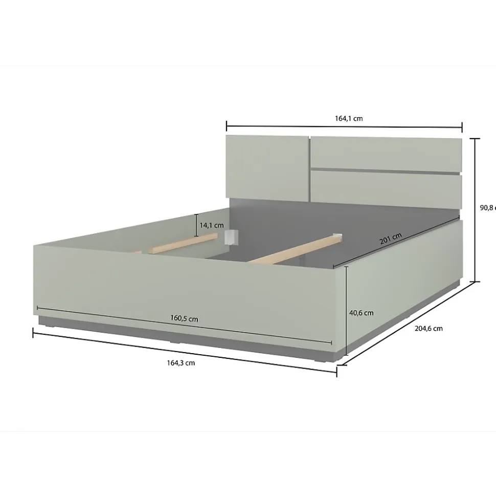 Lit HAVANA 160×200 cm – Coloris vert sauge et noir – Sommier inclus – Structure robuste et design moderneOffrez à votre chambre une atmosphère douce et contemporaine avec le lit HAVANA 160×200 cm en coloris vert sauge et noir. Son design structuré et sa tête de lit haute en font une pièce maîtresse idéale pour les intérieurs modernes. Le sommier est inclus pour vous offrir un confort optimal dès l’installation.Fabriqué en panneaux de particules de première qualité avec des chants soignés, ce lit vous assure une structure stable, résistante et facile à entretenir. Le vert sauge mat, associé à des finitions noires, crée un équilibre visuel élégant et tendance.Caractéristiques du produit :Type de produit : Lit 2 places 160×200 cmCollection : HAVANADimensions : L164,1 cm x H90,8 cm x P204,6 cmColoris : Vert sauge / NoirMatériau : Panneaux de particules 18 mm – Finitions vert sauge mat et noirSommier : InclusNombre de colis : 2Poids total : 75 kgMontage : À assembler soi-même – notice fournieAvantages du lit HAVANA :Design contemporain : Une silhouette moderne avec une belle combinaison de vert sauge et noir.Prêt à l’emploi : Livré avec sommier inclus pour plus de praticité.Coordination idéale : Se marie parfaitement avec les autres meubles HAVANA.Pourquoi choisir ce lit ?Esthétique et confort : Tête de lit haute, finitions mates et sommier inclus.Solidité garantie : Conception robuste et durable pour un usage quotidien.Style universel : S’adapte à tout type de chambre moderne ou naturelle.Le lit HAVANA est disponible en plusieurs dimensions (160×200, 180×200 cm) et coloris (chêne, beige, blanc et noir, vert sauge). Il se décline également en version avec ou sans coffre de rangement selon vos besoins d’organisation.Associez-le aux autres meubles de la collection HAVANA pour créer une chambre élégante et harmonieuse. Découvrez d’autres modèles dans la catégorie Lit.