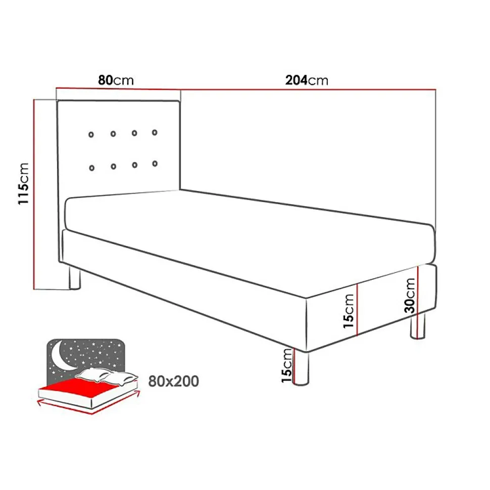 Lit Logan 100 (Solo 267) Caractéristiques: Largeur: 80 cm; Origine: Union européenne; Sommier à lattes: Disponible; Matelas: Disponible; Boîte de literie: Absent; Taille du matelas: 800 x 2000 cm; Hauteur: 115 cm; Longueur: 204 cm; Poids: 53 kg; Matériau: Tissu; Pieds: Métal; Type de matelas: Avec ressorts (Bonnell); Hauteur de la zone de couchage: 47 cm; Matériau du cadre: Stratifié; Matériau du cadre: MDF; Caractéristiques du matelas: À deux côtés; Caractéristiques du matelas: Laine; Caractéristiques du matelas: Mousse de polyuréthane; Caractéristiques de la housse de matelas: Amovible; Caractéristiques de la housse de matelas: Antiallergique; Caractéristiques de la housse de matelas: Lavable; Hauteur du pied: 15 cm; Hauteur du matelas: 17 cm; Tête de lit: Disponible; Code produit: 182423
