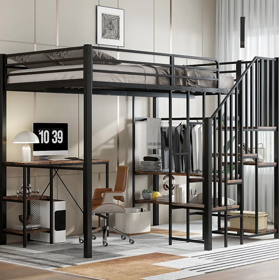 - 【Organisation des vêtements pratique】 Le côté ouvert dispose d’une zone avec tringle et étagères, permettant de ranger vêtements et accessoires sans portes, offrant un accès rapide et une chambre plus fonctionnelle.