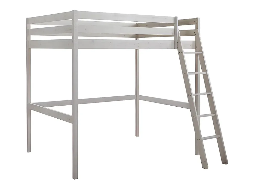 - Lit mezzanine 140 x 190 cm – Structure : Pin massif – Coloris : Blanc – Dimensions : L198 x P203,5 x H196,8 cm – Le lit mezzanine GEDEON II, la solution efficace pour un astucieux gain de place !