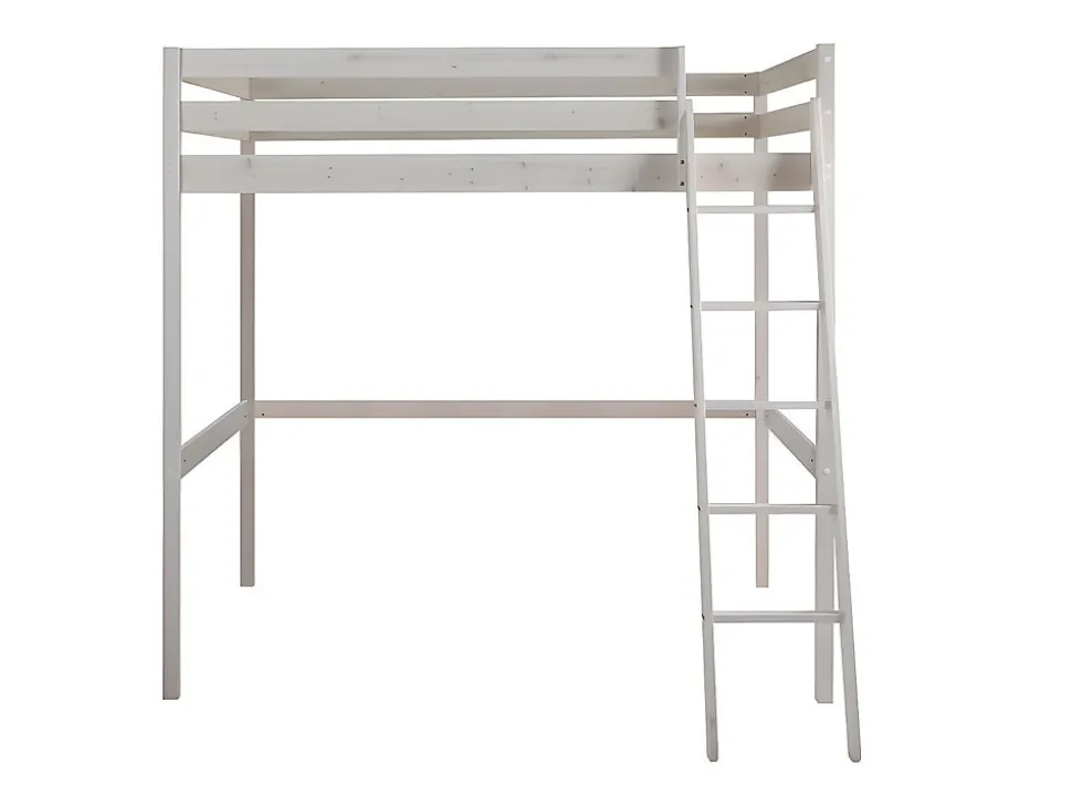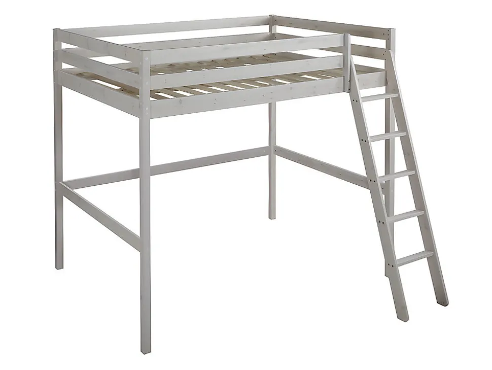 - Lit mezzanine 140 x 190 cm – Structure : Pin massif – Coloris : Blanc – Dimensions : L198 x P203,5 x H196,8 cm + Matelas – Le lit mezzanine GEDEON II, la solution efficace pour un astucieux gain de place !