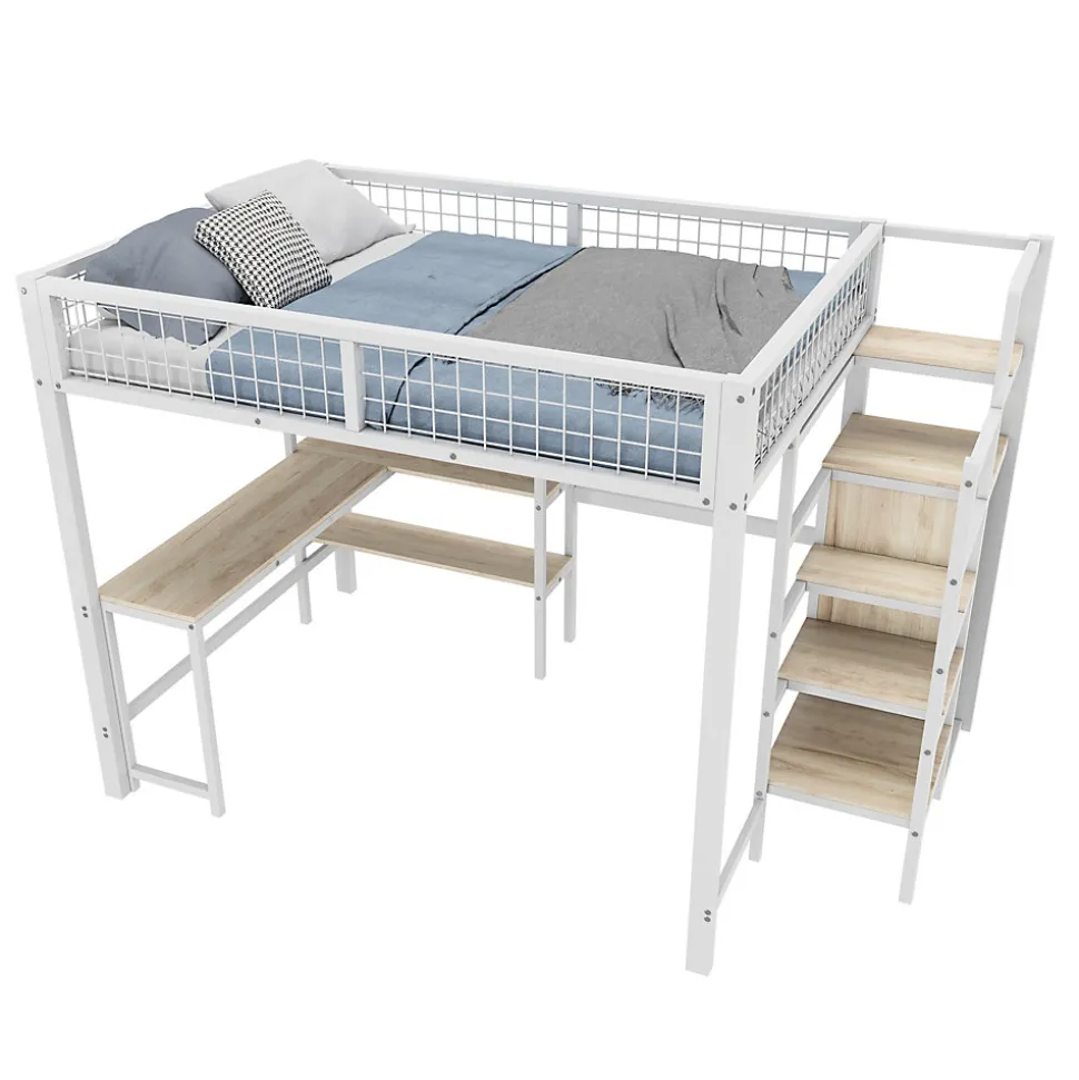 - 【Rangement Pratique et Abondant】 Ce lit est équipé d’un bureau et de plusieurs étagères pour ranger facilement des livres, des lampes, des décorations et plus encore. De plus, un petit placard intégré permet de garder les vêtements bien rangés, ce qui contribue à un environnement de chambre ordonné.