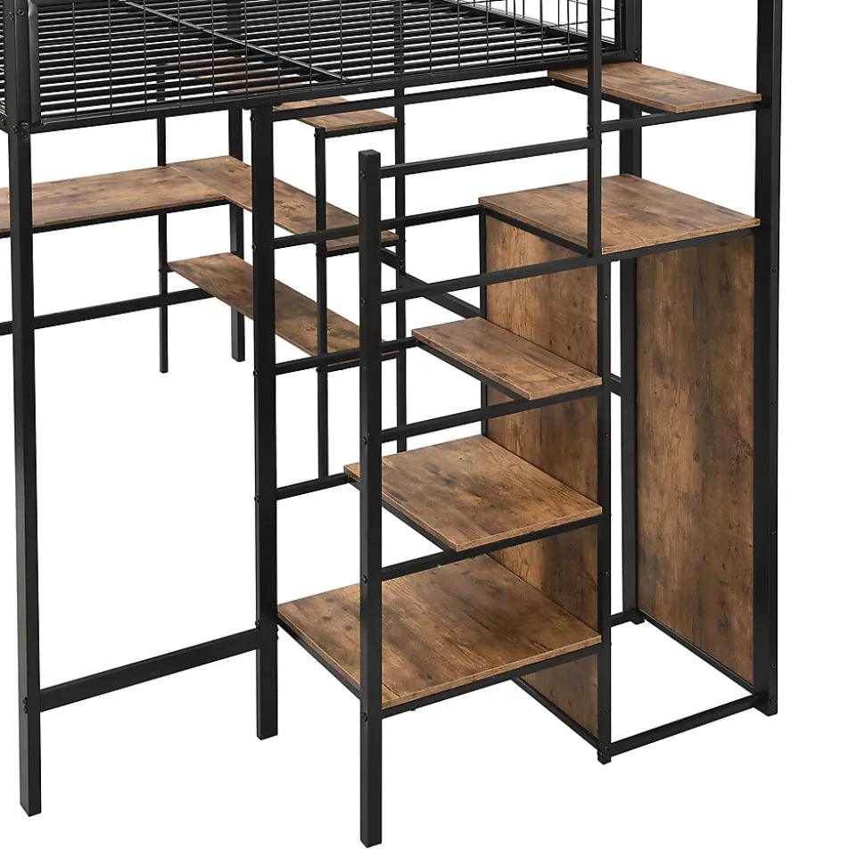 - 【Rangement Pratique et Abondant】 Ce lit est équipé d’un bureau et de plusieurs étagères pour ranger facilement des livres, des lampes, des décorations et plus encore. De plus, un petit placard intégré permet de garder les vêtements bien rangés, ce qui contribue à un environnement de chambre ordonné.