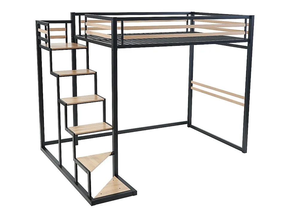 Le lit mezzanine JOGUI est le lit parfait pour aménager un studio ou une chambre d’adolescent. Avec son couchage 2 personnes, sa structure en métal et ses couleurs aux tons modernes, ce lit trouvera facilement sa place dans votre intérieur tout en vous garantissant la solidité dont vous avez besoin. Ce lit est également équipé de réelles marches pour vous permettre de monter dans la mezzanine en toute sécurité. Son petit plus : Utilisez l’espace disponible sous la mezzanine pour y placer un canapé, un bureau ou un meuble de rangements pour une réelle optimisation de l’espace !Caractéristiques Couleur (nuance) : Noir Matière (précision) : Métal Finition : Mat Taille (couchage) : 140 x 200 cm Nombre de places : 2 places Réversible Option (meuble) : Avec escalier Sans matelas Avec sommier Type de sommier : Cadre à lattes Nombre de lattes : 52 lattes Charge maximale supportée : 240 kg À monter soi-même : Marches et barrière en MDF mélaminé : L’échelle peut être montée vers la gauche ou vers la droite : Ce lit est compatible avec tous les matelas 140×200 cm : Attention, le lit ne convient pas aux enfants de moins de 6 ansDimensions Longueur : 260.5 cm Hauteur : 197 cm Profondeur : 198 cm Hauteur de couchage : 175 cm Hauteur sous la mezzanine : 165 cm Hauteur de la barrière de sécurité : 32 cmLivraisonLors de la livraison, il est conseillé de vérifier que le bon nombre de colis a été livré.ColisColis n°1 : Longueur 213 cm, Largeur 54 cm, Hauteur 14 cm, Poids 53 kg. Colis n°2 : Longueur 153 cm, Largeur 58 cm, Hauteur 13 cm, Poids 38 kg. Colis n°3 : Longueur 65 cm, Largeur 54 cm, Hauteur 7 cm, Poids 9 kg.