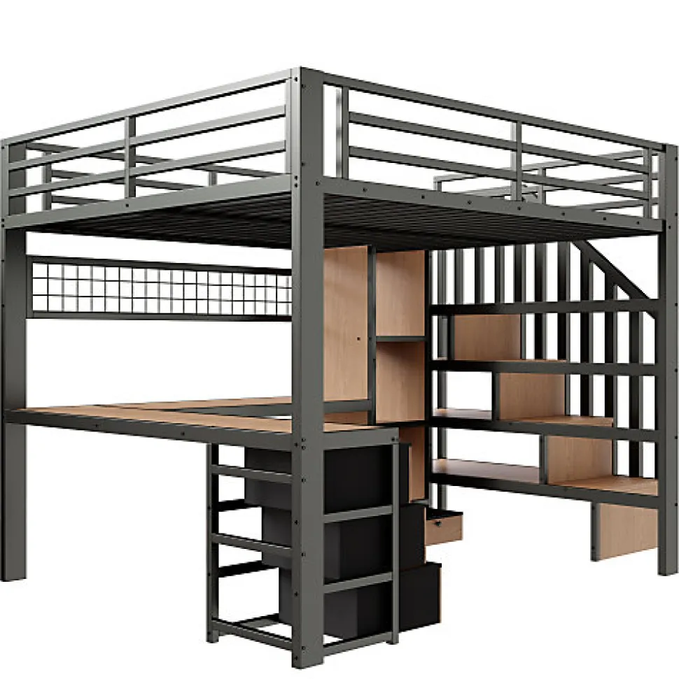 •【Construction robuste et durable】La combinaison d’une structure en acier et de panneaux de fibres de moyenne densité (MDF) garantit la robustesse, la durabilité et la sécurité de ce lit enfant, accompagnant ainsi la croissance de votre enfant.•【Éclairage intelligent et féérique】Les bandes lumineuses LED intégrées vous permettent de régler la couleur et la luminosité selon vos envies, créant une ambiance de sommeil apaisante et transportant votre enfant dans un monde féerique.•【Solutions de rangement optimales】Équipé d’étagères, de tiroirs et de penderies, ce lit offre un espace de rangement généreux pour les livres, les jouets et les vêtements, pour une chambre toujours propre et bien rangée.•【Espace de travail intégré】Le lit est doté d’un bureau intégré, fusionnant harmonieusement espace de travail et espace de repos pour créer un coin d’étude dédié et efficace pour votre enfant.•【Échelle de rangement astucieuse】L’échelle de rangement intégrée facilite l’accès au lit et offre un espace de rangement pratique et ludique.•【Facile à assembler】Des instructions détaillées et des pièces complètes sont disponibles pour vous aider à réaliser l’assemblage rapidement.