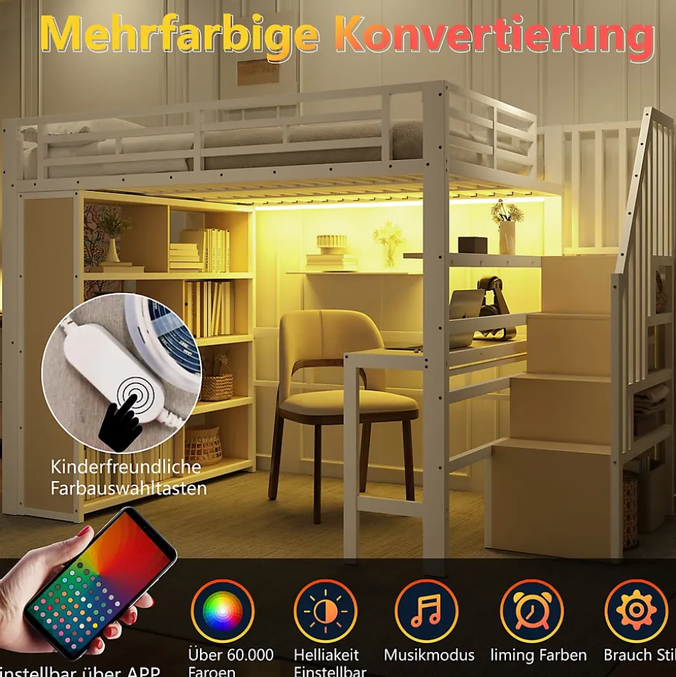 - 【Éclairage LED personnalisable】 La bande LED intégrée peut être réglée via application pour ajuster couleurs et intensité selon l’activité ou l’ambiance souhaitée, créant une atmosphère chaleureuse et flexible dans la chambre.