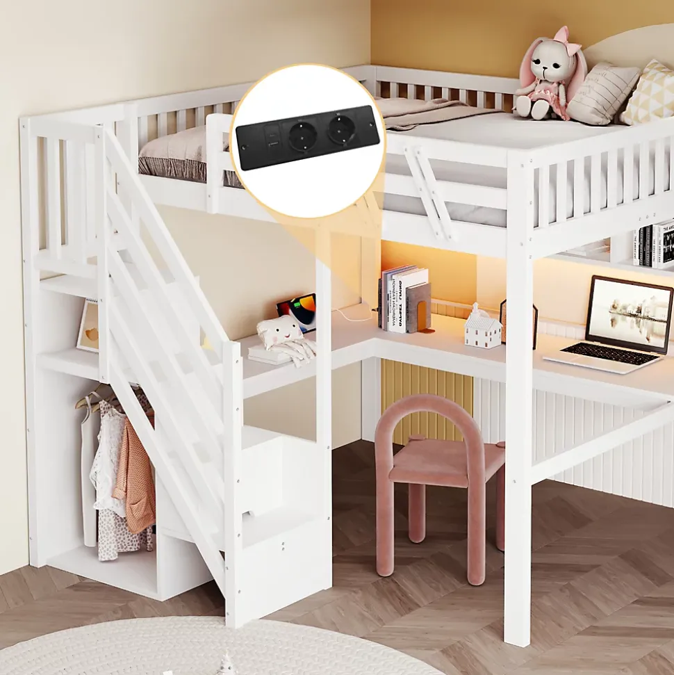 ▶ ▶ Détails ▶────────────────● Type de produit : Lit mezzanine● Couleur : Blanc● Materiau : Bois massif + contreplaque + MDF● Dimensions totales : 205 × 193,5 × 170 cm● Dimensions du couchage : 140 × 200 cm (Sans matelas)● Capacite de charge maximale : 150 kg● Poids net : 85 kg● Accessoires inclus : Bureau integre, LED, prise USB, rangement avec escalier● Assemblage : Complet / partiel requis, outils inclus, sans outils electriques● Temps estime d’assemblage : 1 heure● Personnes recommandees pour l’assemblage : 2● Nombre de colis : 4● Poids des colis : 24,6 kg / 26,1 kg / 18,3 kg / 25,1 kg► Remarques ►※ Les mesures sont approximatives et peuvent varier legerement.※ Les couleurs peuvent legerement differer de l’image en raison de l’eclairage ou de l’ecran.※ Le matelas n’est pas inclus.※ Pour toute question lors de l’installation, veuillez nous contacter des que possible.