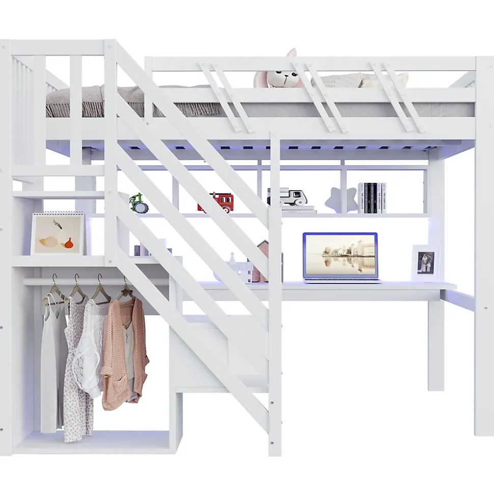 - 【Éclairage LED Intégré】 Les bandes LED discrètes sous le lit diffusent une lumière douce et agréable, parfaite pour étudier le soir ou créer une ambiance chaleureuse qui rend l’espace plus accueillant et fonctionnel.