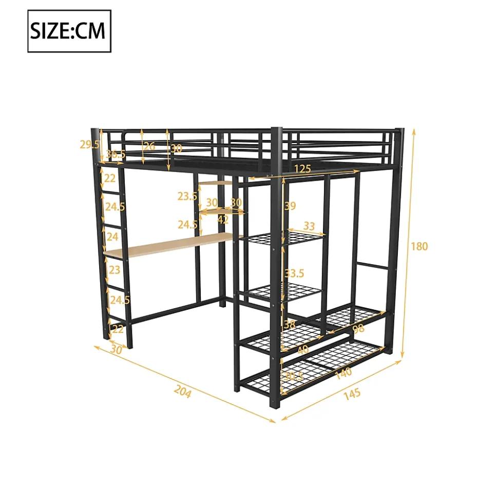 - 【Lit surélevé multifonctionnel】 Ce lit combine couchage, bureau et rangement, offrant un espace optimisé pour étudier, travailler ou se détendre tout en ajoutant une touche moderne à la chambre.
