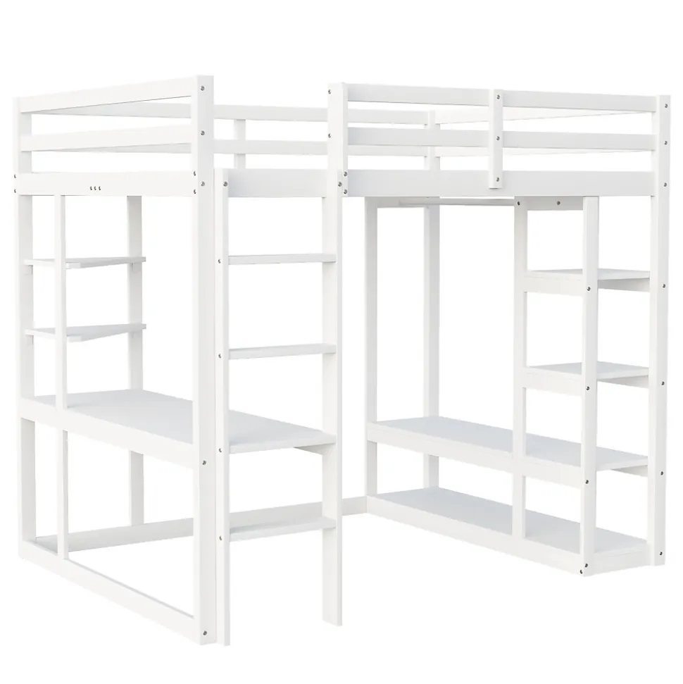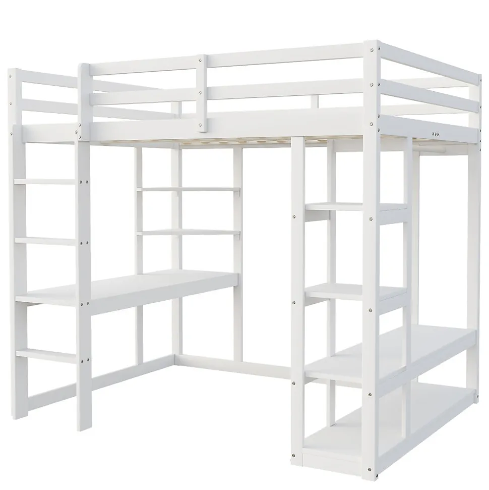 - 【Bureau Avec Rangement Latéral】 Sous le lit, un large bureau avec étagères latérales offre un espace de travail confortable et bien organisé, parfait pour étudier ou réaliser des activités créatives.