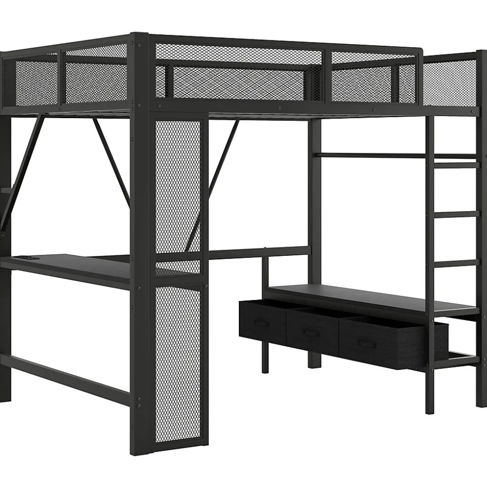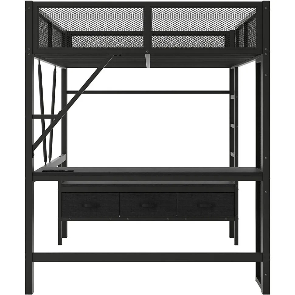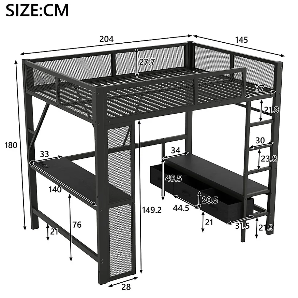 - 【Design gain de place】 Le lit mezzanine intègre un long bureau et trois tiroirs en dessous, combinant espace de sommeil, de travail et de rangement pour optimiser la surface et aménager même les petites chambres efficacement.