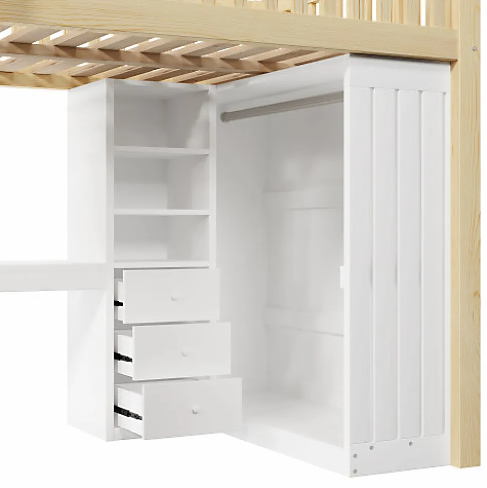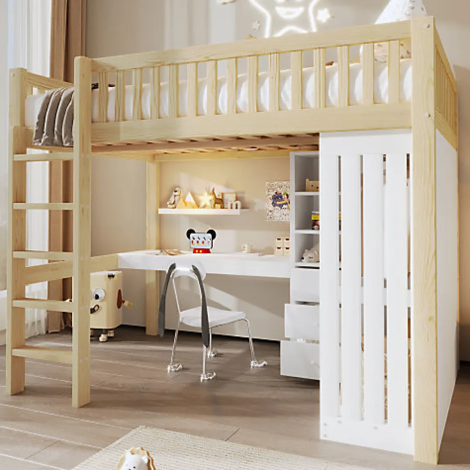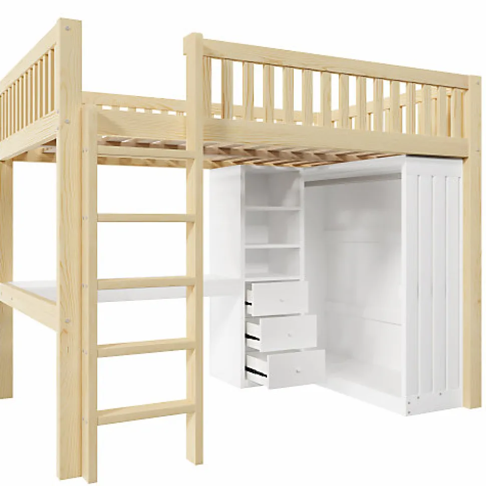 •【Sélection naturelle, durable et robuste】Fabriqué en pin de première qualité et en panneaux de fibres de moyenne densité (MDF), ce meuble allie beauté naturelle et robustesse pour un confort et une tranquillité d’esprit assurés.•【Espace d’étude intégré】Équipé d’un bureau ergonomique, ce meuble crée un espace d’étude dédié à votre enfant, favorisant sa concentration et son épanouissement.•【Rangement optimal, propre et organisé】Les placards intégrés et les trois tiroirs spacieux répondent à tous vos besoins de rangement, pour une maison bien organisée.•【Visibilité immédiate】La conception ouverte des placards permet de visualiser tous les objets en un coup d’œil, pour un accès facile et un quotidien plus agréable.•【Accès sécurisé et pratique】Équipé de barres d’appui et de marches, ce meuble garantit la sécurité des enfants et un accès facile, pour un confort optimal à la maison.•【Facile à assembler】Des instructions détaillées et des pièces complètes sont disponibles pour vous aider à réaliser l’assemblage rapidement.