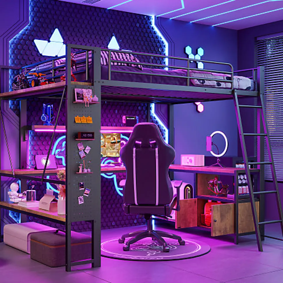 •【Fabriqué avec des matériaux haut de gamme】L’alliance parfaite d’une structure en fer et de panneaux de fibres de moyenne densité (MDF) garantit la robustesse et la durabilité de ce bureau. Son allure solide apporte une touche de stabilité et de modernité à votre intérieur.•【Contrôle intelligent de l’éclairage】Les bandes lumineuses LED intégrées, contrôlables via une application, vous permettent d’ajuster la luminosité et la couleur pour créer une ambiance chaleureuse et confortable en toutes occasions.•【Rangement optimal】Doté de compartiments de rangement, d’étagères à plusieurs niveaux et d’étagères suspendues, ce bureau offre de nombreuses possibilités de rangement. Organisez vos affaires et créez un espace propre et ordonné.•【Bureau multifonctionnel tout-en-un】Ce bureau tout-en-un répond facilement à vos besoins d’étude et de travail. Plus besoin d’acheter de meubles supplémentaires, il vous permet de gagner de la place et vous offre une expérience pratique et agréable.•【Fonctionnalité de chargement pratique】Équipé d’un port USB, il vous permet de recharger facilement vos appareils électroniques. Plus besoin de chercher des prises électriques : un confort de vie assuré !•【Facile à assembler】Des instructions détaillées et des pièces complètes sont disponibles pour vous aider à réaliser l’assemblage rapidement.