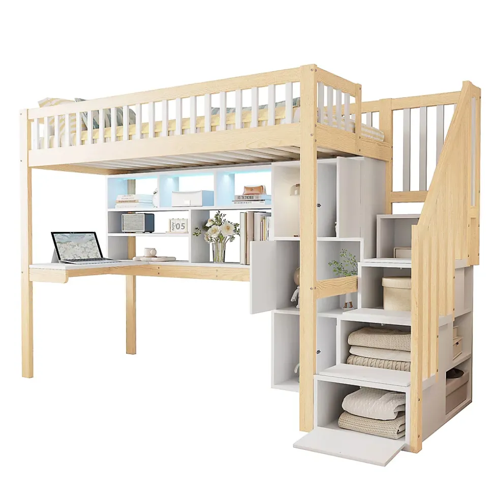 - 【Matériaux naturels et robustes】 Le lit mezzanine combine bois de pin et MDF pour une structure solide et durable, apportant chaleur et caractère naturel à la chambre tout en supportant un usage quotidien intensif.