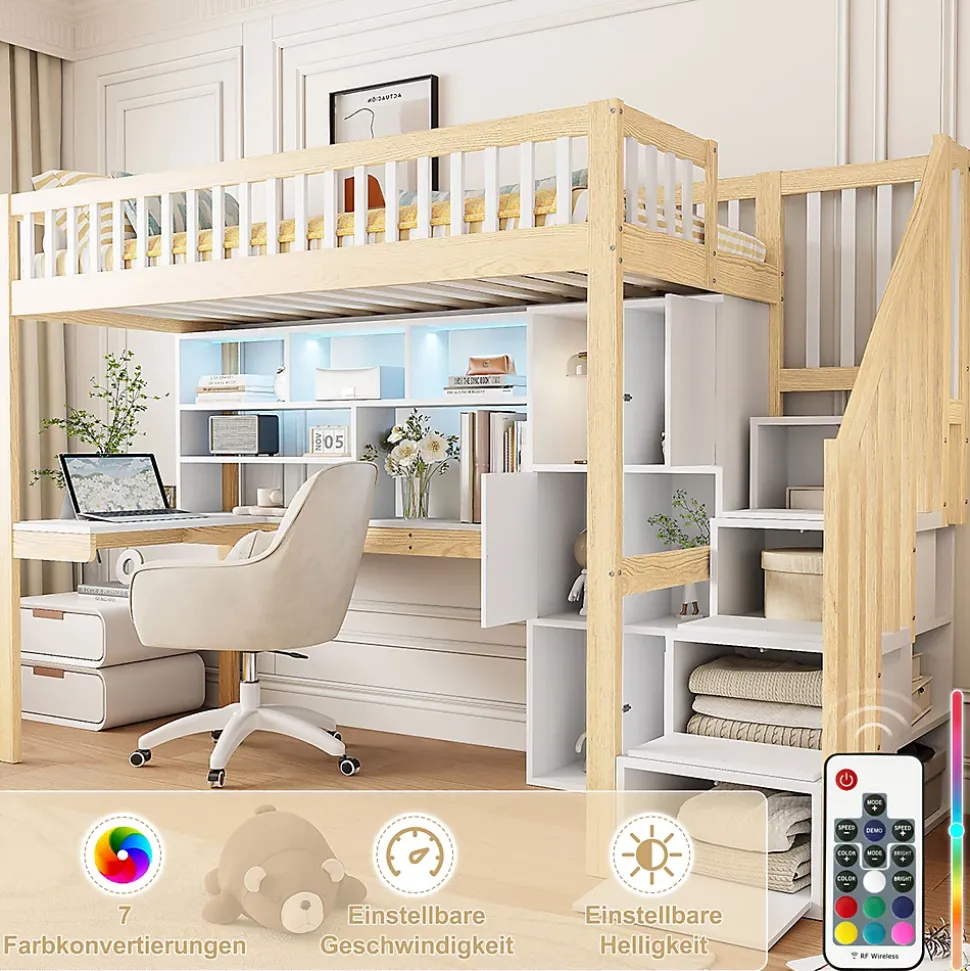 - 【Éclairage d’ambiance intégré】 Les bandes LED sous le lit créent une atmosphère douce et romantique, transformant l’espace en un cocon accueillant et favorisant un moment de détente agréable pour les enfants.