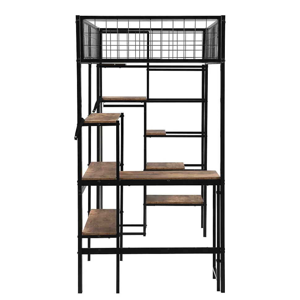 - 【Rangement Pratique et Abondant】 Ce lit est équipé d’un bureau et de plusieurs étagères pour ranger facilement des livres, des lampes, des décorations et plus encore. De plus, un petit placard intégré permet de garder les vêtements bien rangés, ce qui contribue à un environnement de chambre ordonné.