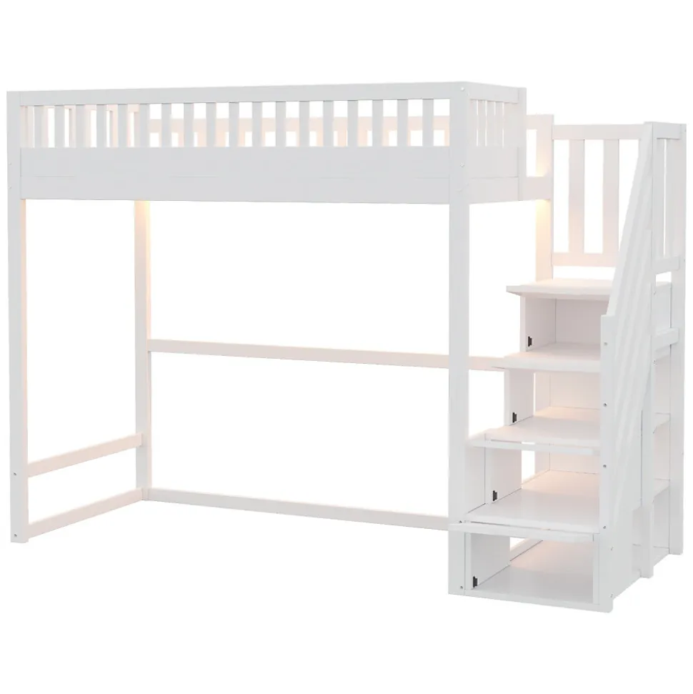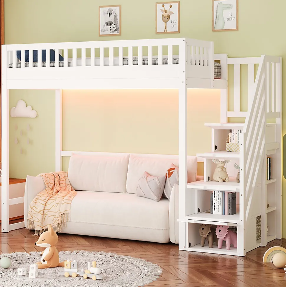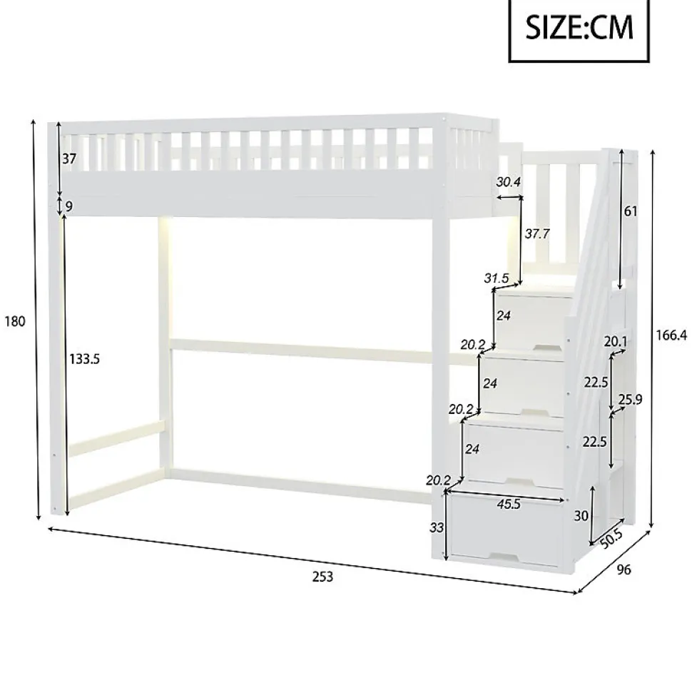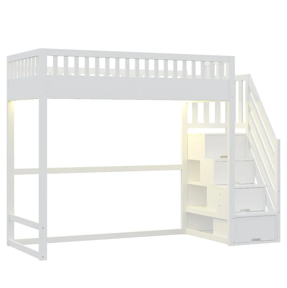 •【Sécurité renforcée 】Les barrières de lit plus hautes et les garde-corps continus entourant la zone de couchage offrent une protection fiable contre les chutes, garantissant un environnement de sommeil plus sûr pour les enfants et les adolescents. Une échelle robuste assure une stabilité optimale et un accès facile au lit.•【Échelle de rangement intégrée】Chaque barreau de l’échelle dissimule un espace de rangement pour les livres, les vêtements, le linge de lit ou les objets du quotidien, contribuant ainsi à garder la chambre propre et bien rangée.•【Espace ouvert sous le lit】L’espace ouvert sous le lit offre une grande flexibilité, permettant une configuration personnalisée de la chambre. Vous pouvez l’utiliser comme coin devoirs, coin lecture, espace de jeux ou aire de jeux pour enfants. À mesure que votre enfant ou adolescent grandit, cet espace peut être facilement réaménagé pour répondre à ses besoins.•【Éclairage LED intégré】Ce lit mezzanine est équipé de bandes lumineuses LED en partie basse, diffusant une lumière d’ambiance douce, améliorant la visibilité nocturne et créant une atmosphère chaleureuse et confortable.•【Construction en bois robuste】Ce lit mezzanine est fabriqué en bois durable et renforcé par un cadre solide, offrant une stabilité supérieure et une capacité de charge fiable.•【Escalier rétractable】L’escalier peut être installé à gauche ou à droite du lit, offrant une grande flexibilité d’installation pour s’adapter à différentes configurations de pièce et optimiser l’espace.•【 Montage facile】Des instructions détaillées et toutes les pièces nécessaires sont fournies pour un montage rapide.