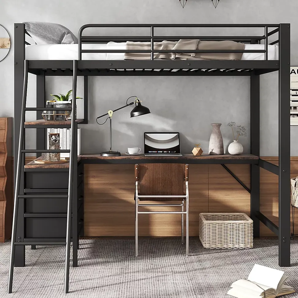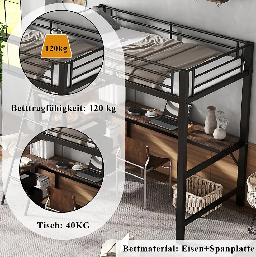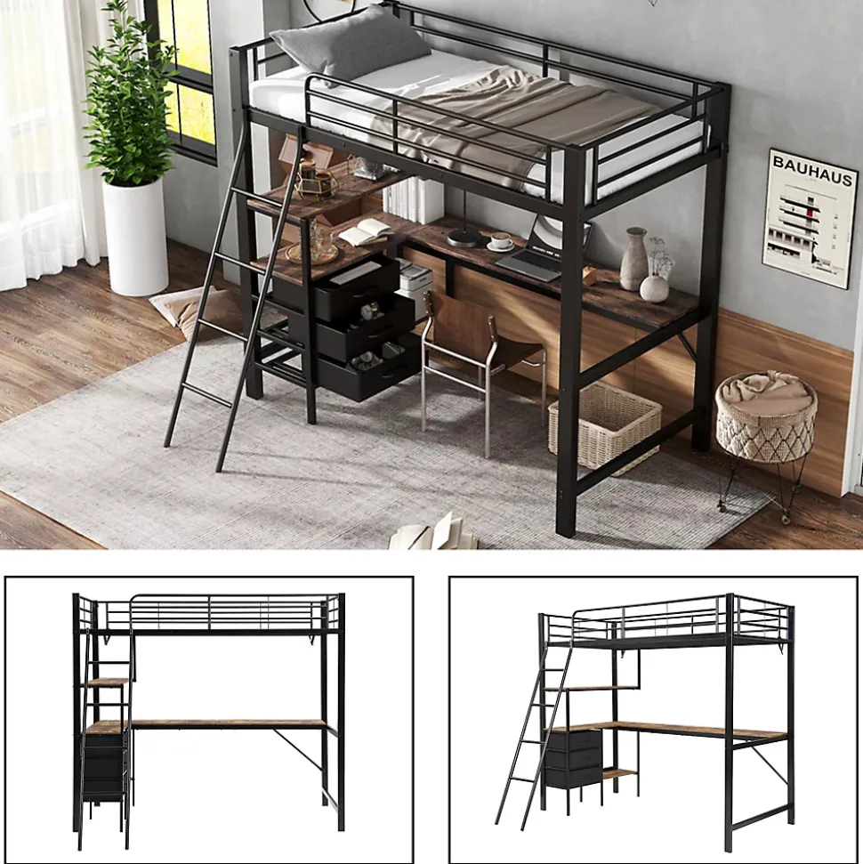 - 【Design pensé pour la fonctionnalité】 La combinaison de métal et de bois crée un design moderne et robuste, intégrant rangement et espace de travail pour maximiser l’utilisation de l’espace dans la chambre.