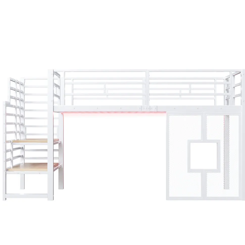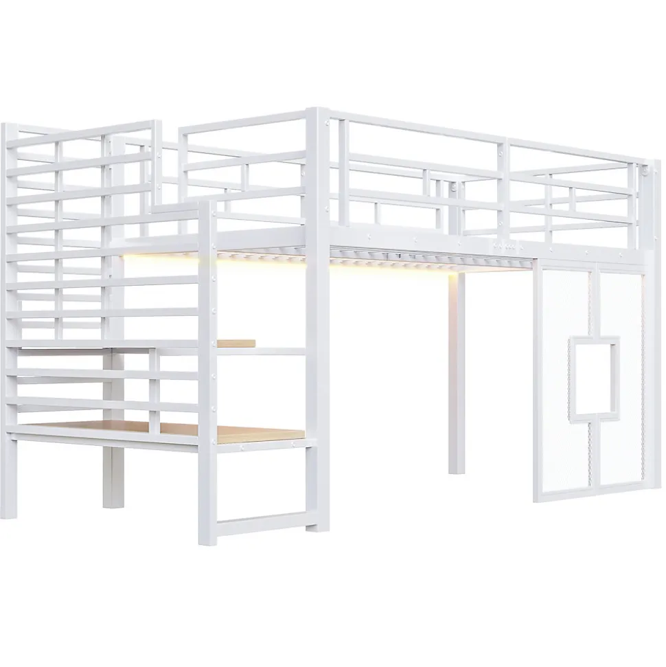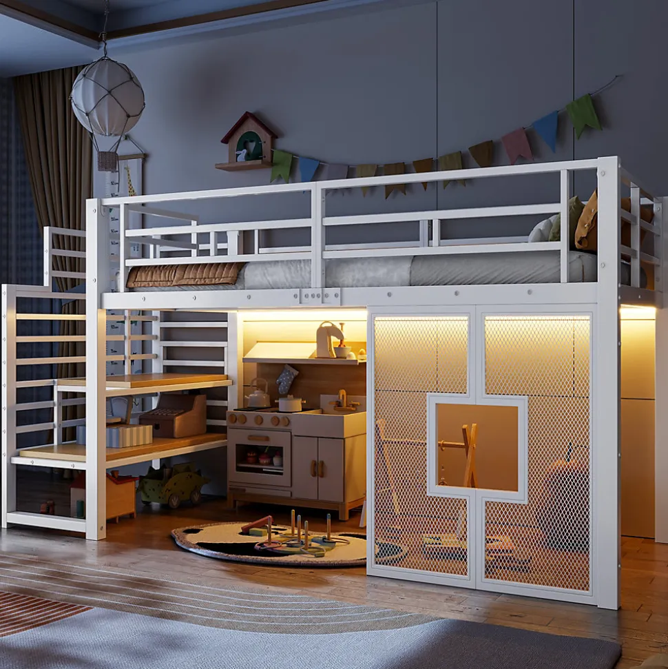 - 【Lit Mezzanine Gain de Place】 Ce lit mezzanine en métal maximise l’espace vertical en combinant un lit supérieur confortable avec un bureau intégré et des rangements, créant un environnement fonctionnel et pratique pour chaque chambre.