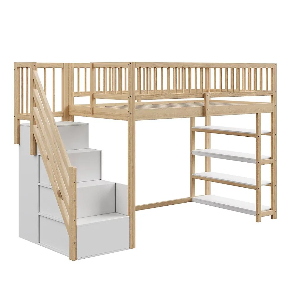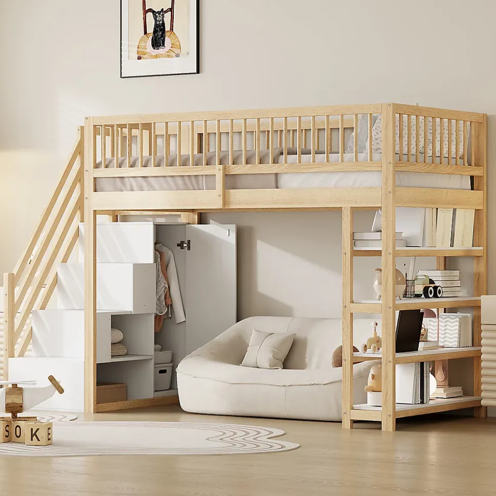 - 【Rangement généreux】 Les placards, armoires et étagères intégrés sous le lit offrent un espace de rangement considérable pour les vêtements, les jouets ou autres objets, ce qui vous permet de garder votre chambre bien organisée.
