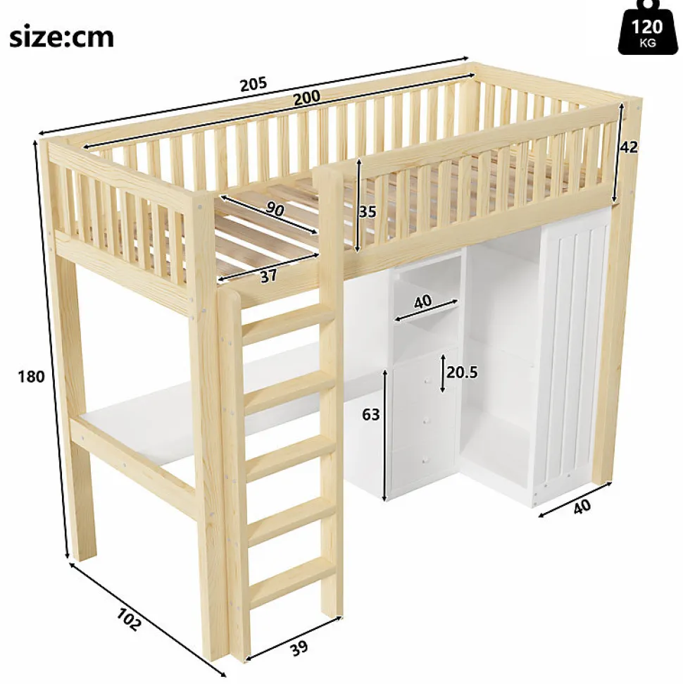 •【Sélection naturelle, durable et robuste】Fabriqué en pin de première qualité et en panneaux de fibres de moyenne densité (MDF), ce meuble allie beauté naturelle et robustesse pour un confort et une tranquillité d’esprit assurés.•【Espace d’étude intégré】Équipé d’un bureau ergonomique, ce meuble crée un espace d’étude dédié à votre enfant, favorisant sa concentration et son épanouissement.•【Rangement optimal, propre et organisé】Les placards intégrés et les trois tiroirs spacieux répondent à tous vos besoins de rangement, pour une maison bien organisée.•【Visibilité immédiate】La conception ouverte des placards permet de visualiser tous les objets en un coup d’œil, pour un accès facile et un quotidien plus agréable.•【Accès sécurisé et pratique】Équipé de barres d’appui et de marches, ce meuble garantit la sécurité des enfants et un accès facile, pour un confort optimal à la maison.•【Facile à assembler】Des instructions détaillées et des pièces complètes sont disponibles pour vous aider à réaliser l’assemblage rapidement.
