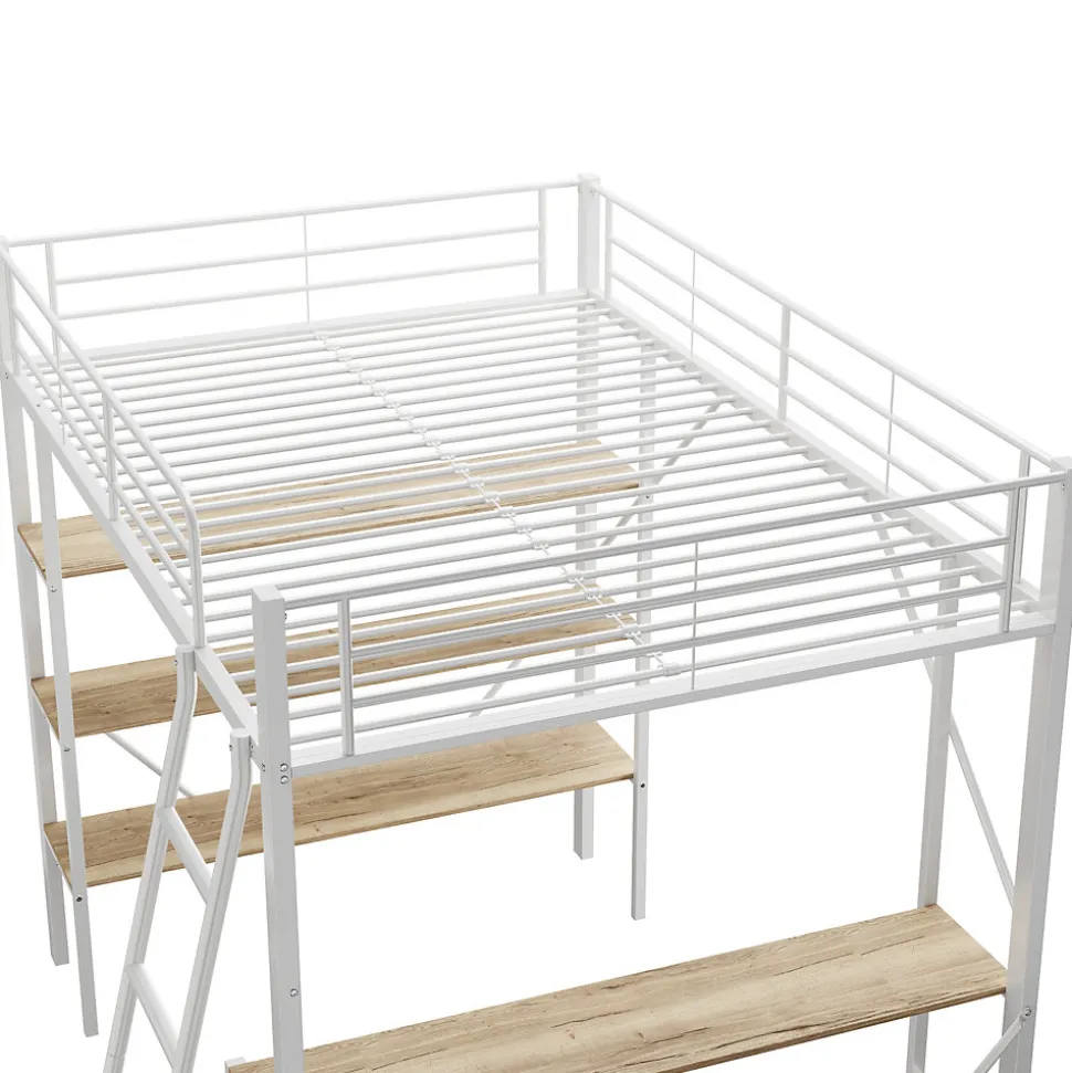 DescriptionLit Mezzanine 90×200 cm en Métal avec Bureau et Étagères – BlancMaximisez l’espace de votre chambre avec ce lit mezzanine moderne et fonctionnel. Idéal pour dormir, étudier ou travailler, il combine design minimaliste, sécurité et robustesse. Parfait pour les enfants, adolescents et étudiants.Points forts :1. Structure solide et durableCadre en acier robuste avec tubes épais pour une stabilité optimalePlateau en MDF solide et durable, conçu pour un usage quotidienCapacité de charge : 120 kg2. Fonctionnalité intégréeBureau spacieux pour travailler ou étudierTrois grandes étagères pour ranger livres, fournitures et objets personnelsLit supérieur entouré de barrières de sécurité pour prévenir les chutes3. Design moderne et minimalisteCouleur blanche neutre, adaptable à tous les styles d’intérieurParfait pour dortoirs, chambres d’enfants ou appartements compacts4. Sécurité certifiéeConforme à la norme EN747, adapté aux enfants à partir de 6 ansÉchelle fixe sécurisée pour un accès facile au lit supérieur5. Livraison et montageLivré en 2 colis depuis l’AllemagneAssemblage requis, instructions fourniesLes colis peuvent arriver à des dates différentes, merci de patienter ou contacter le service clientSpécifications :Dimensions totales du produit : 204.5 x 149 x 180.5 cm (L x l x H)Dimensions du lit : 90 x 200 cmMatériaux : Métal + MDFCouleur : BlancNombre de sommiers : 24 piècesÉpaisseur recommandée du matelas : 10-15 cmNombre de colis : 2Montage requis : Oui