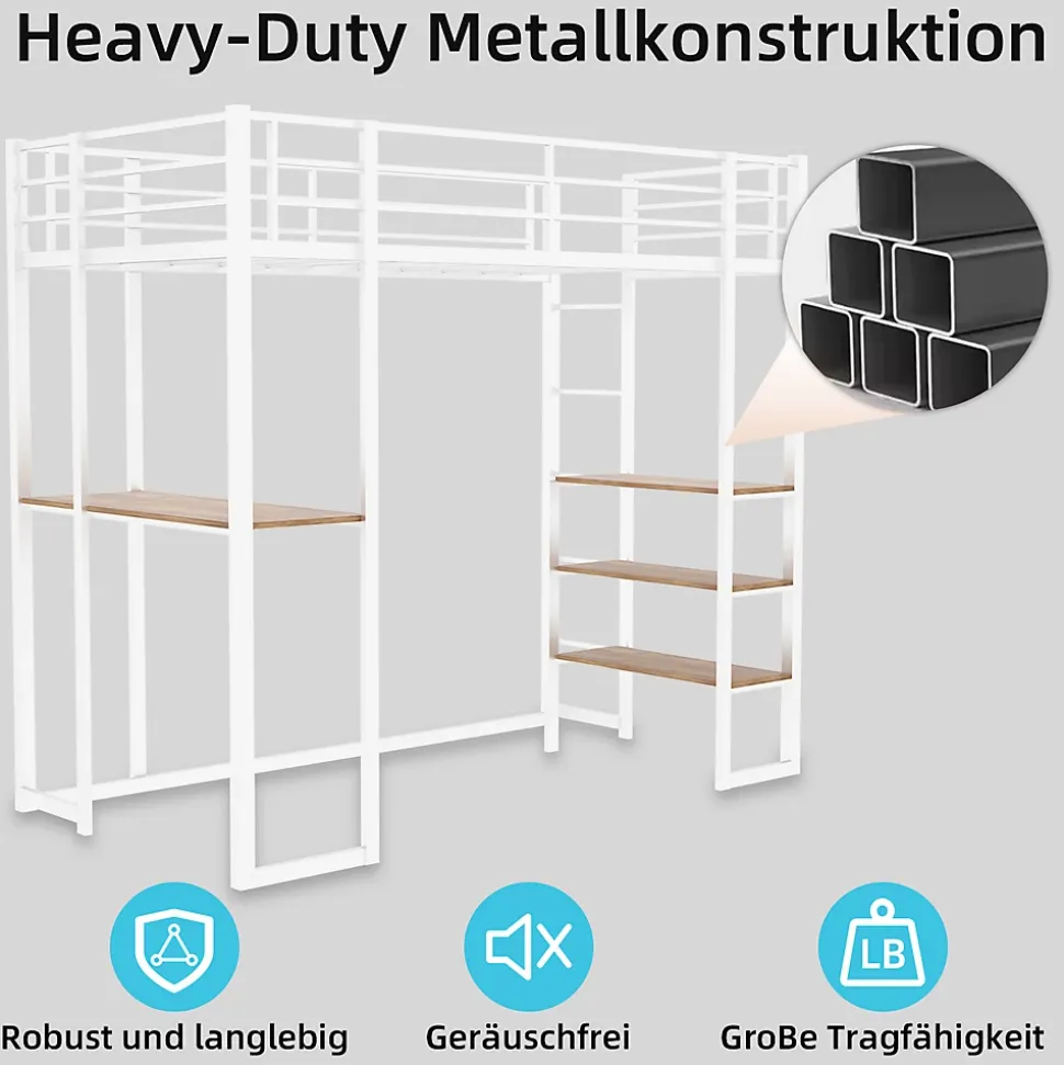 ▶ ▶ Détails ▶────────────────● Type de produit : Lit mezzanine● Matériau : Métal (fer)● Couleur : Blanc● Pays d’origine : Chine● Usage recommandé : Chambre à coucher● Dimensions totales : 200 × 107 × 180 cm (L × l × H)● Montage requis : Oui● Nombre de colis : 2► Remarques ►※ Les dimensions sont indiquées à titre approximatif.※ Les colis peuvent être livrés séparément.※ La couleur du produit peut légèrement varier selon la lumière ou l’écran.