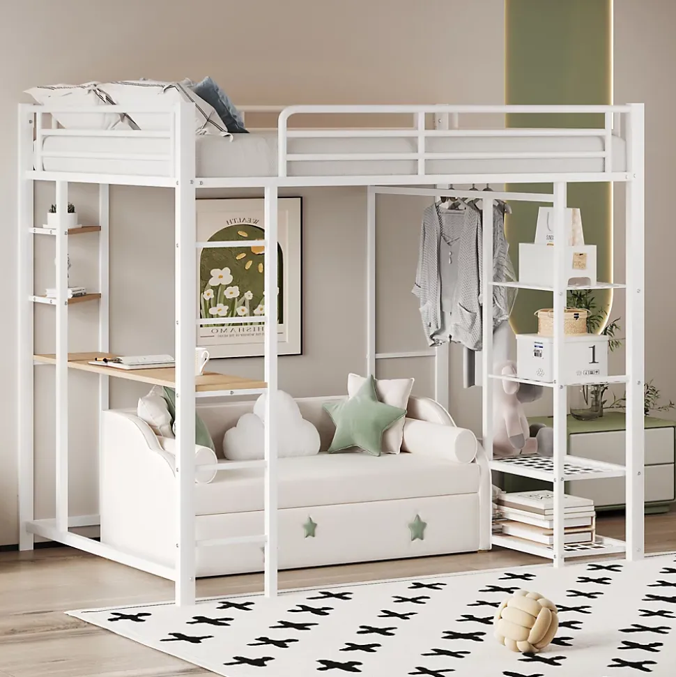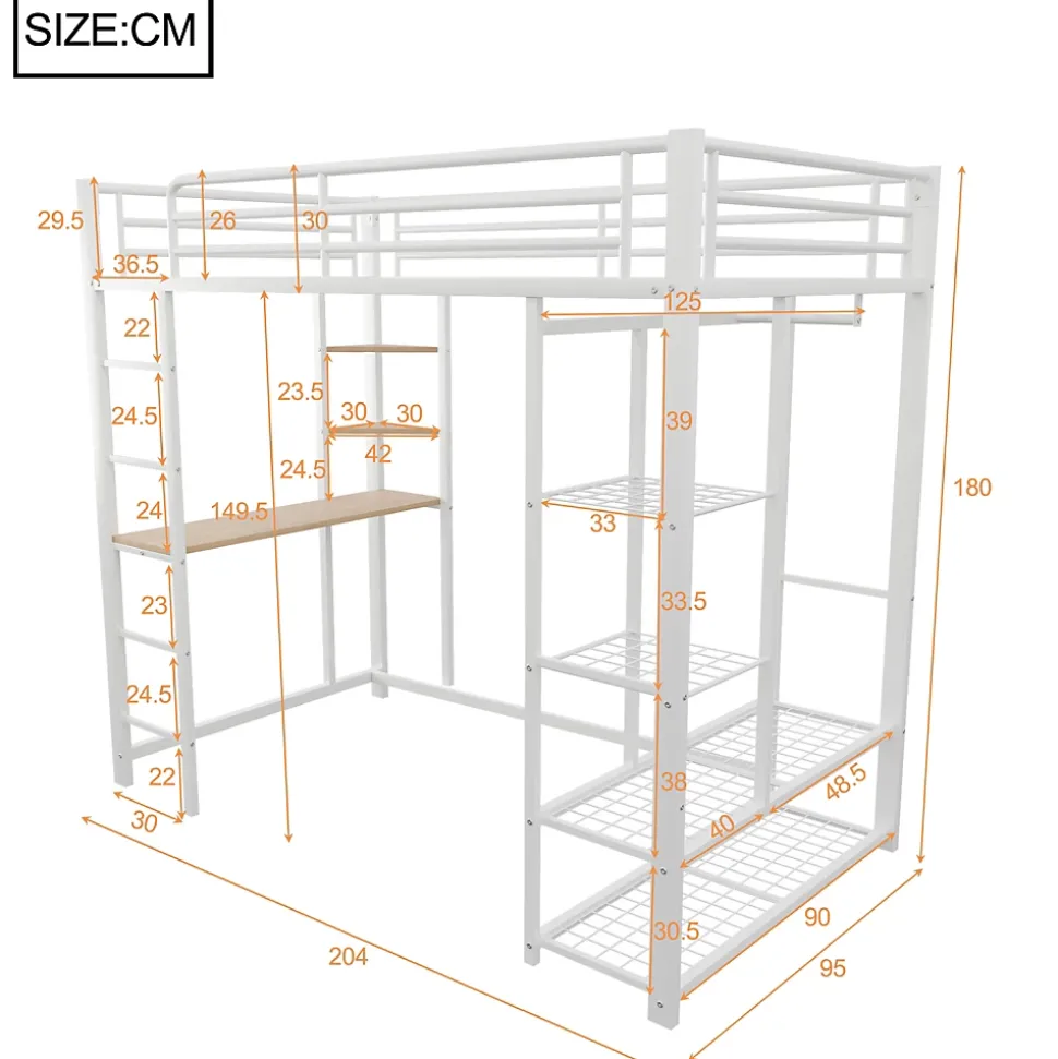 - 【Lit surélevé multifonctionnel】 Ce lit combine couchage, bureau et rangement, offrant un espace optimisé pour étudier, travailler ou se détendre tout en ajoutant une touche moderne à la chambre.