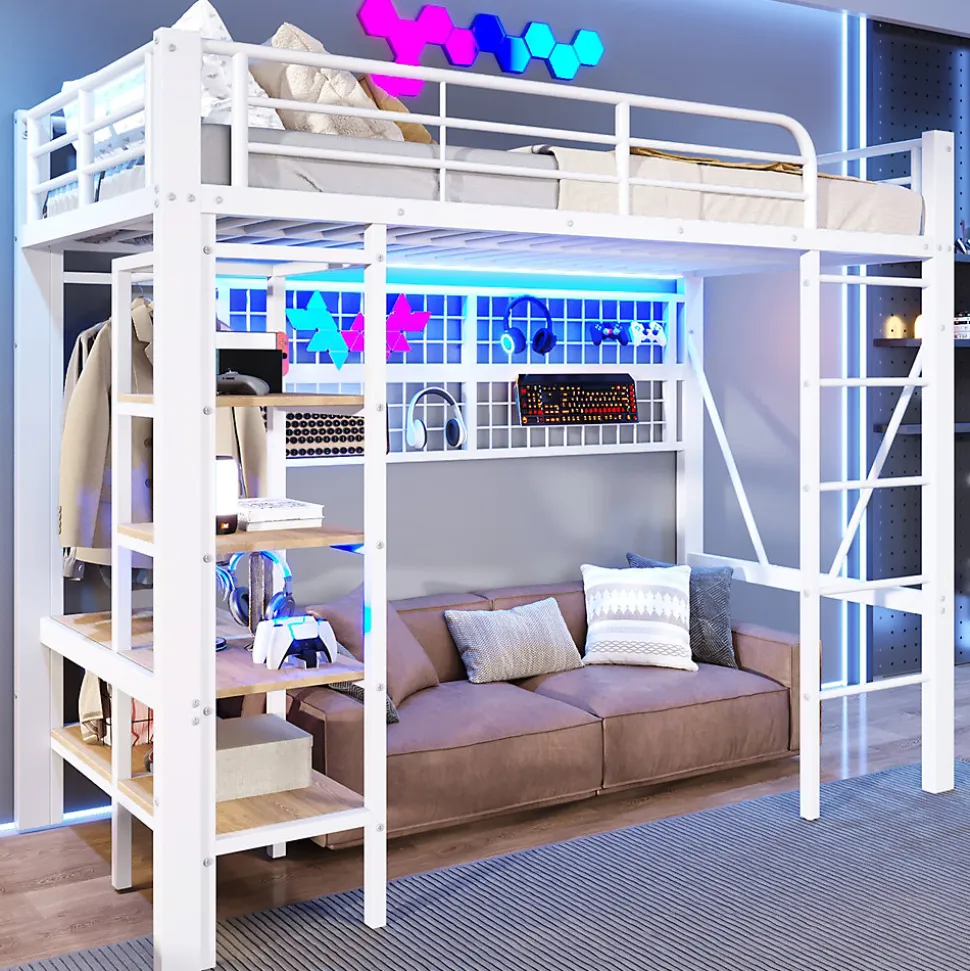 ▶ ▶ Détails ▶────────────────✦ Type de produit : Lit mezzanine✦ Couleur : Blanc✦ Matériau : Métal + MDF✦ Dimensions du lit : 90 × 200 cm✦ Dimensions du produit : 204 × 95 × 180 cm✦ Poids net : 45 kg✦ Capacité maximale (lit) : 120 kg✦ Matelas inclus : Non✦ Épaisseur recommandée du matelas : 10 cm✦ Équipement : Ablagefach, filet de rangement, tringle à vêtements, espace ouvert sous le lit, bande LED intégrée✦ Nombre de colis : 2✦ Montage requis : Oui► Remarques ►※ Ce produit est livré en 2 colis. Ils peuvent arriver à des moments différents.※ En raison de mesures manuelles, un écart de 2–3 cm peut se produire.※ Les images du produit sont prises avec le produit réel, mais des variations de couleur peuvent se produire en fonction de l’éclairage.