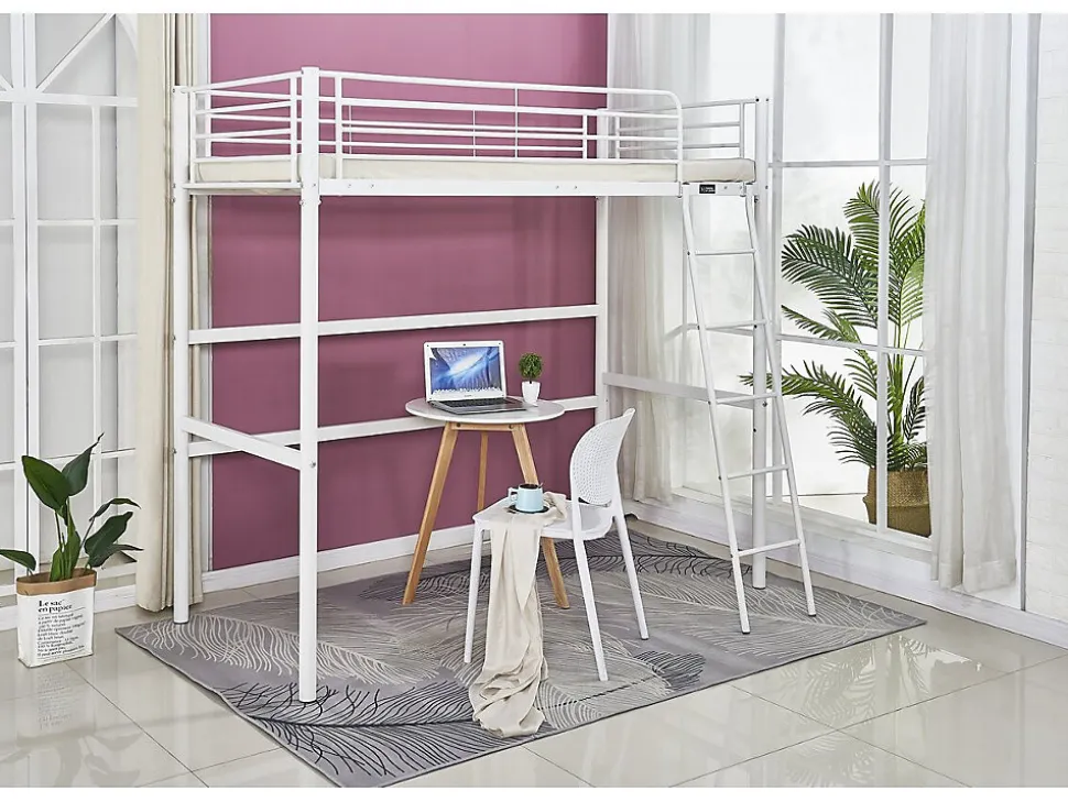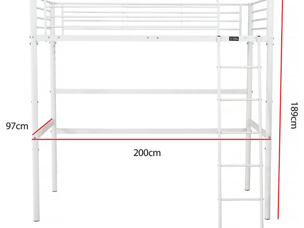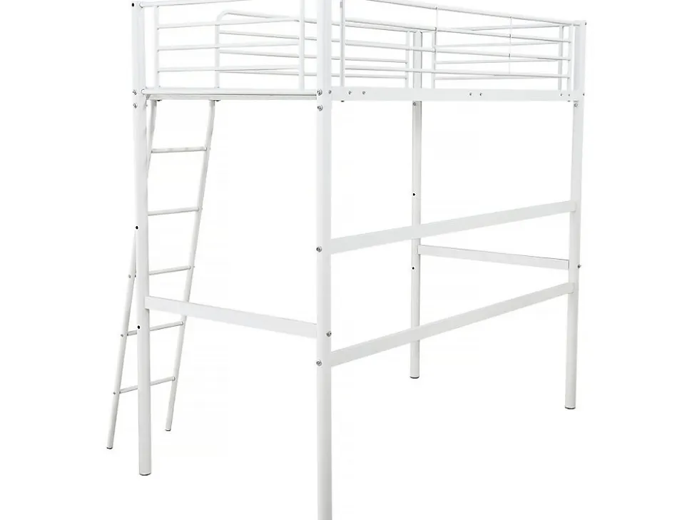 Lit mezzanine « Alora »Ce lit mézzanine met à votre disposition un couchage surélevé. Il est idéal pour une chambre d’enfant. Grâce à sa construction en hauteur, ce modèle vous permet de rentabiliser l’espace sous le lit (espace de travail ou de rangement, par exemple). Les marches de l’échelle larges , garantissent la facilité et la sécurité des montées et des descentes. Lit mezzanine « Alora » – 90 x 190 cm – Blanc – Dimensions : 200 x 97 x 189 cm – Matière : tube en acier avec un revêtement en poudre – Hauteur de couchage : 152 cm .Matières: Tube en acier avec un revêtement en poudreDescriptif: 24 Lattes en métal inclues – Dimensions des lattes : 1.6 x 1.6 x 2.2 Echelle en acier 5 marches inclues Barrière de sécurité – Dimensions barrière de sécurité : 150 x 1.9 x 32 cm Dimensions de l’échelle : 159 x 36.5 x 2.2 Taille recommandé pour le matelas : 90 x 190 cm Hauteur de couchage : 152 cmFinition: Mâtcouleur (filtre): Blancpieds: Tube en acier avec un revêtement en poudre – Dimensions du pieds : 5 x 5 x 160 cmCouleurs: blancDimensions: 200 x 97 x 189 cmLongueur: 200hauteur: 189Largeur: 97Poids: 36.3 kgPoids maximum supporté : 100 kgColisage: 1 colis : – 1,97 x 0,46 x 0,145 m, 36,3 kg