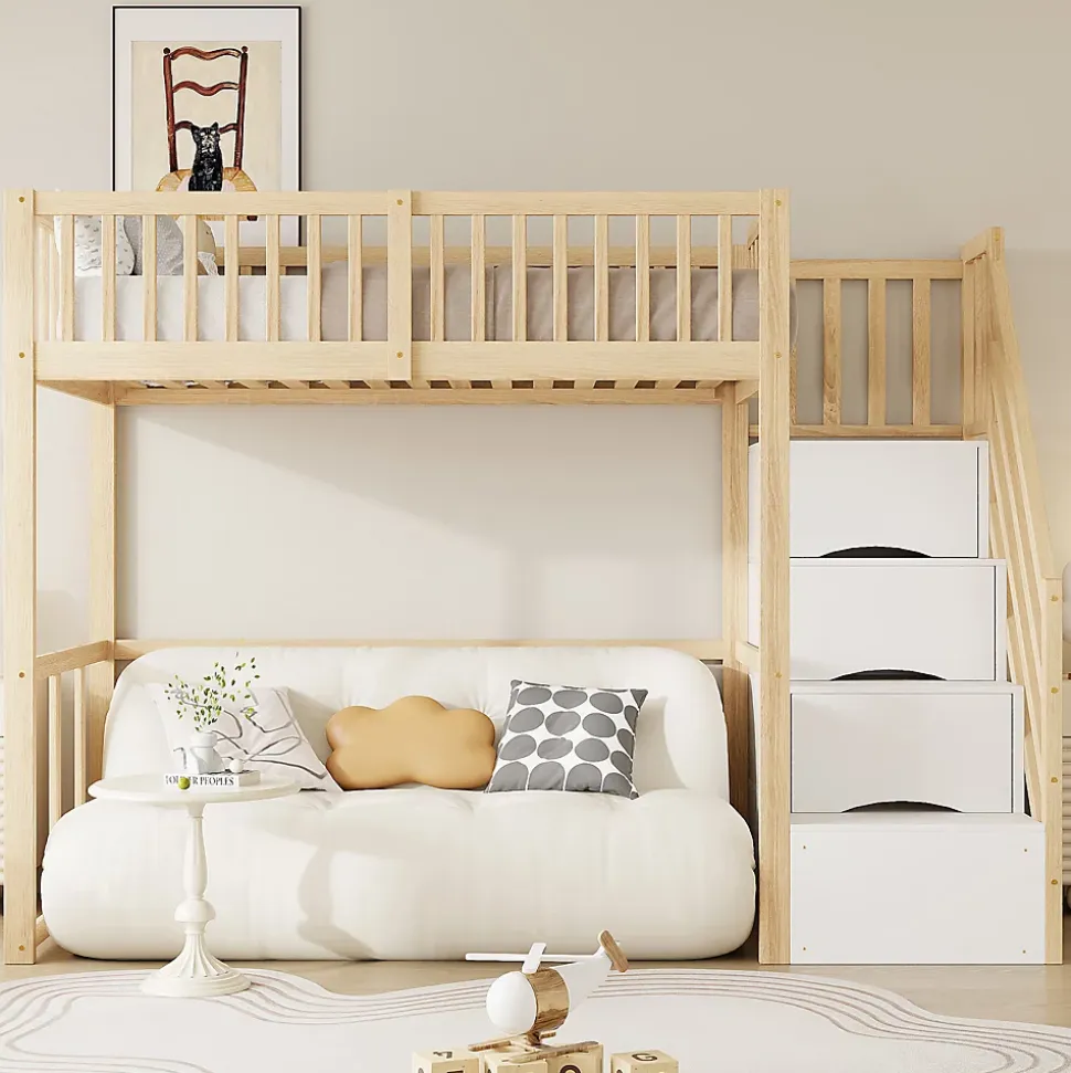 - 【Rangement pratique et intégré】 Les escaliers intégrés sont plus qu’un simple accès au lit, ils offrent également un espace de rangement supplémentaire pour organiser livres, jouets et accessoires. Cela vous aide à maximiser l’espace dans des chambres plus petites.