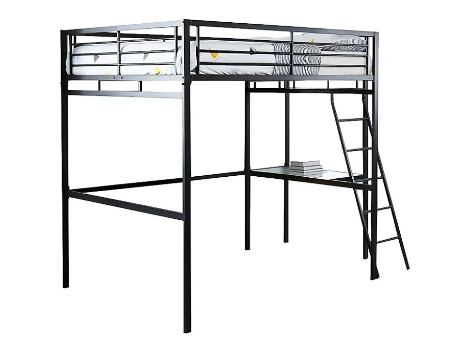 - Lit mezzanine double CASUAL II – couchage 140 x 190 cm – 2 places – Avec plateforme bureau. Sommier inclus. Structure : Métal. Coloris : Anthracite. Style : Industriel – Dimensions : L197xP146xH254 cm. Gain de place et ingéniosité avec le lit CASUAL II !