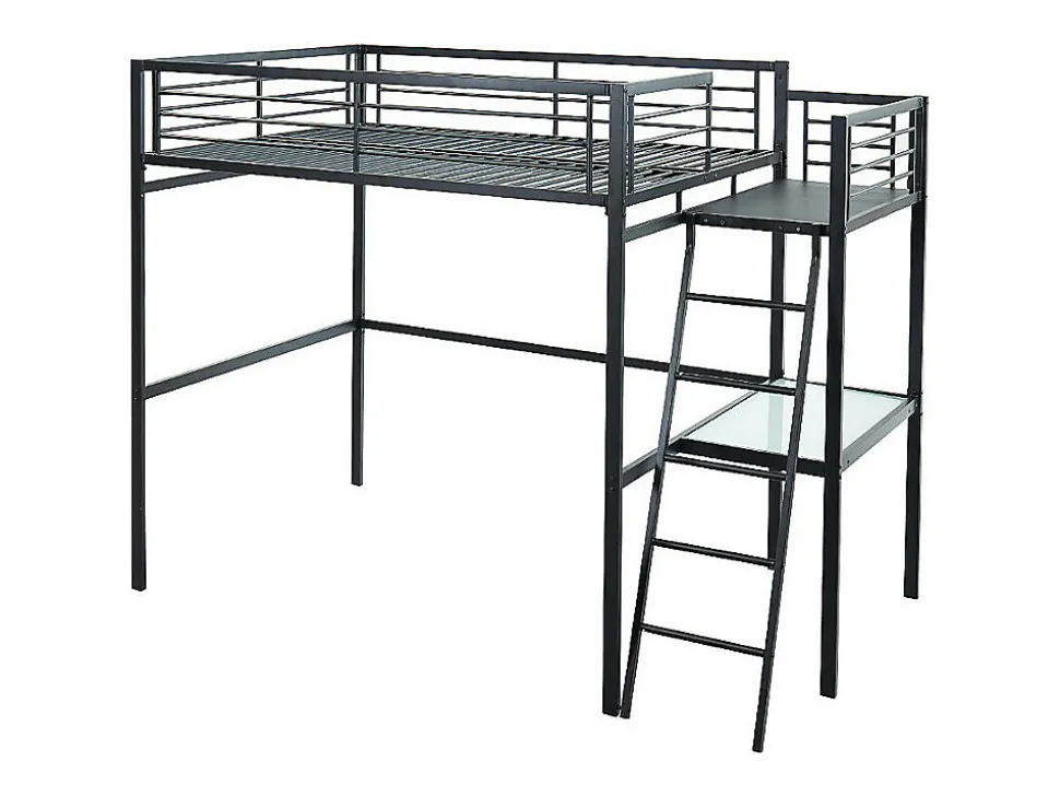 De jour comme de nuit, le lit mezzanine CASUAL II sera l’élément phare de votre pièce ! Doté d’un couchage 2 places surélevé, il dispose d’une partie inférieure aménagée en 2 espaces distincts : Un espace bureau pour des après-midis studieux grâce à son plateau intégré et un espace prêt à accueillir un canapé pour des soirées entre amis. Idéal pour les espaces réduits, il fera votre bonheur au quotidien.Caractéristiques Couleur (nuance) : Gris anthracite Matière (précision) : Acier Taille (couchage) : 140 x 190 cm Nombre de places : 2 places Sans matelas Avec sommier Type de sommier : Cadre à lattes, Métal Avec bureau Charge maximale supportée : 200 kg À monter soi-même : Sommier de 26 lattes : Plateforme en MDF Finition : Mat Bureau : verre trempé 6 mm : Echelle réversible Charge maximum supportée : 200 kg : A fixer au mur : Ce lit est compatible avec tous les matelas 140 x 190 cm : Attention ne convient pas aux enfants de moins de 6 ansDimensions Longueur : 254 cm Hauteur : 197 cm Profondeur : 146 cm Hauteur sous le lit : 158 cm Plateforme bureau : L90 x P51 cmLivraisonLors de la livraison, il est conseillé de vérifier que le bon nombre de colis a été livré.ColisColis n°1 : Longueur 203 cm, Largeur 50 cm, Hauteur 11 cm, Poids 40 kg. Colis n°2 : Longueur 150 cm, Largeur 59 cm, Hauteur 13 cm, Poids 36 kg. Colis n°3 : Longueur 101 cm, Largeur 57 cm, Hauteur 7 cm, Poids 13 kg.