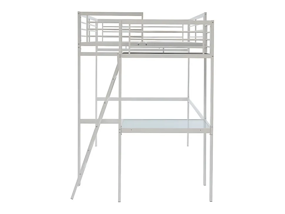 De jour comme de nuit, le lit mezzanine CASUAL II sera l’élément phare de votre pièce ! Doté d’un couchage 2 places surélevé, il dispose d’une partie inférieure aménagée en 2 espaces distincts : Un espace bureau pour des après-midis studieux grâce à son plateau intégré et un espace prêt à accueillir un canapé pour des soirées entre amis. Idéal pour les espaces réduits, il fera votre bonheur au quotidien.Caractéristiques Couleur (nuance) : Blanc Matière (précision) : Acier Taille (couchage) : 140 x 190 cm Nombre de places : 2 places Sans matelas Avec sommier Type de sommier : Cadre à lattes, Métal Avec bureau Charge maximale supportée : 200 kg À monter soi-même : Sommier de 26 lattes : Plateforme en MDF Finition : Mat Bureau : verre trempé 6 mm : Echelle réversible Charge maximum supportée : 200 kg : A fixer au mur : Ce lit est compatible avec tous les matelas 140 x 190 cm : Attention ne convient pas aux enfants de moins de 6 ansDimensions Longueur : 254 cm Hauteur : 197 cm Profondeur : 146 cm Hauteur sous le lit : 158 cm Plateforme bureau : L90 x P51 cmLivraisonLors de la livraison, il est conseillé de vérifier que le bon nombre de colis a été livré.ColisColis n°1 : Longueur 203 cm, Largeur 50 cm, Hauteur 11 cm, Poids 40 kg. Colis n°2 : Longueur 150 cm, Largeur 59 cm, Hauteur 13 cm, Poids 36 kg. Colis n°3 : Longueur 101 cm, Largeur 57 cm, Hauteur 7 cm, Poids 13 kg.