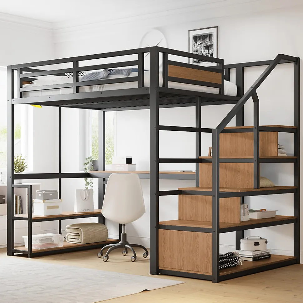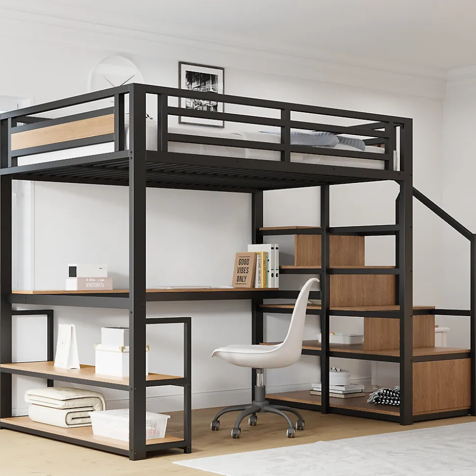 - 【Design gain de place】 Ce lit mezzanine regroupe couchage, rangement et espace de travail en un seul meuble, libérant de la surface au sol et permettant d’optimiser la chambre avec style et fonctionnalité.