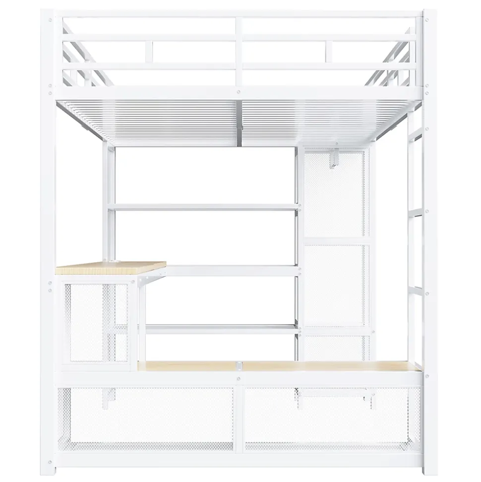 Spécifications● Couleurs du produit : blanc● Dimension du produit : 208 x 148 x 170 cm● Matériau du produit : Métal + MDF● Poids du produit : 76.5 kg● Capacité de charge : 250 kg● Épaisseur recommandée du matelas : 10 cm (Matelas non inclus)● Montage requis : Oui● Nombre de colis : 3Attentions● Ce produit est divisé en 3 colis pour la livraison. Il se peut qu’ils n’arrivent pas en même temps. Merci d’attendre patiemment.● La livraison comprend un cadre de lit, un sommier à lattes . Le matelas n’est pas compris dans la livraison.● Si vous avez des questions pendant l’installation, veuillez nous contacter dès que possible.
