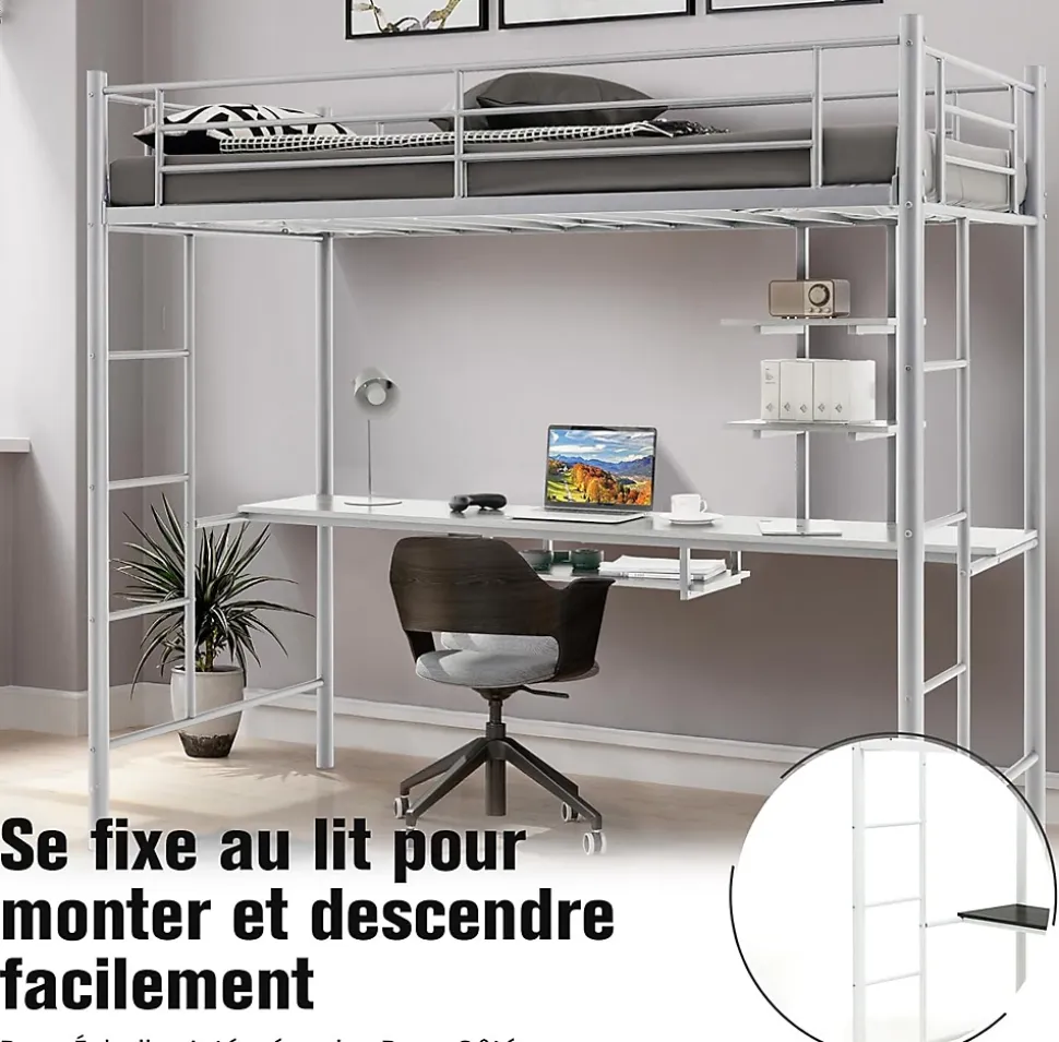 Ce lit mezzanine en métal avec bureau constitue la solution parfaite pour maximiser votre espace limité, idéal pour créer un espace supplémentaire pour que votre enfant puisse étudier, travailler et jouer. La construction en acier solide est construite pour durer et assure une meilleure stabilité pour une forte capacité de charge. Ce lit superposé en métal est parfait pour votre chambre, votre dortoir et votre petit appartement.