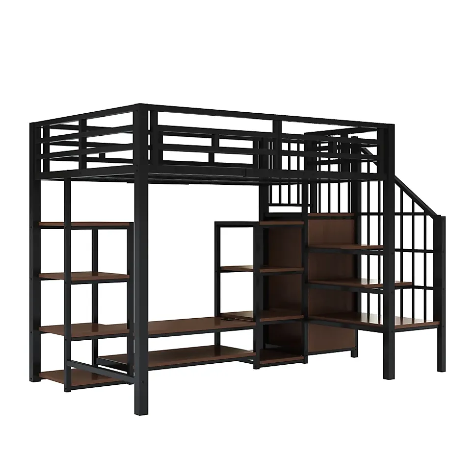 - 【Mobilier multifonction】 Ce lit mezzanine est équipé d’un support TV intégré, permettant d’installer facilement un téléviseur et d’autres appareils multimédias. Cela combine confort, rangement et espace de divertissement, tout en optimisant votre espace de vie.