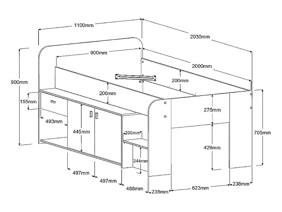 - Lit mi-hauteur 90 x 190/200 cm avec rangements – Structure : Panneaux de particules – Coloris : Beige et naturel – Dimensions : L110 x P203 x H90 cm – Style : Moderne – Structurez l’espace avec le lit mi-hauteur LUNOBI !