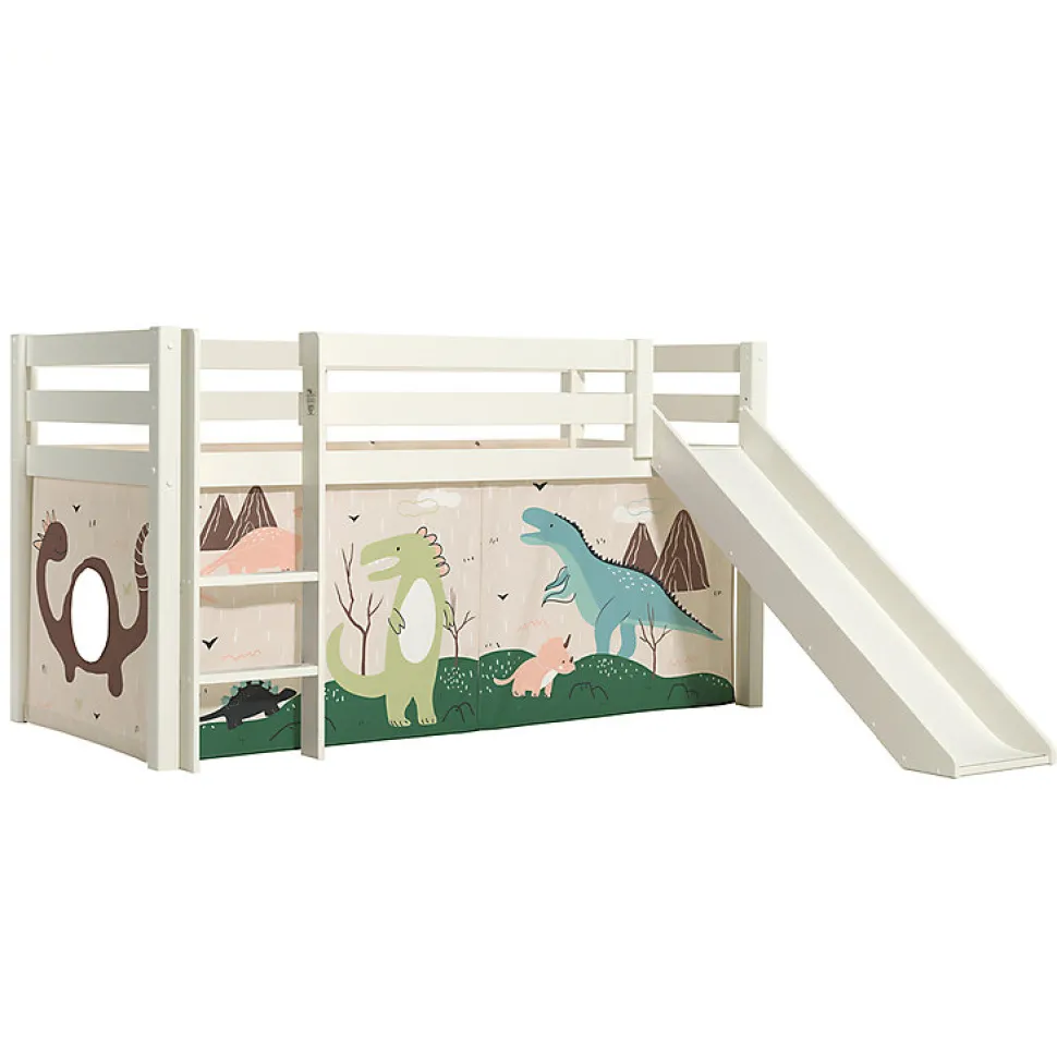 - Caractéristiques : Conseillé à partir à 6 ans – Sommier inclus – toboggan inclus – Textile inclus