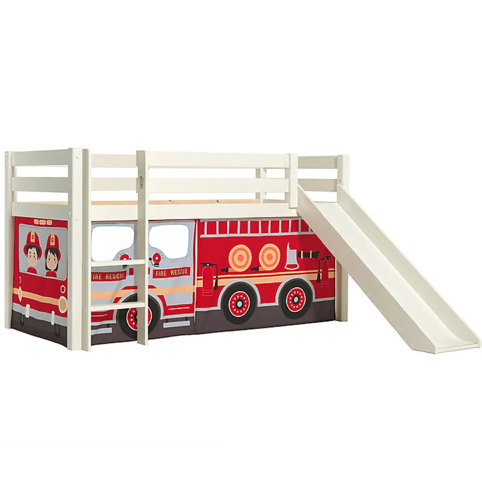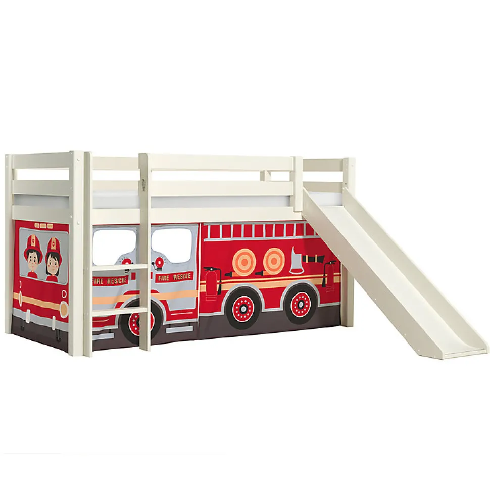 Lit Mi-Hauteur 90×200 Toboggan sommier inclus housse Pompier Vipack Pino Blanc
