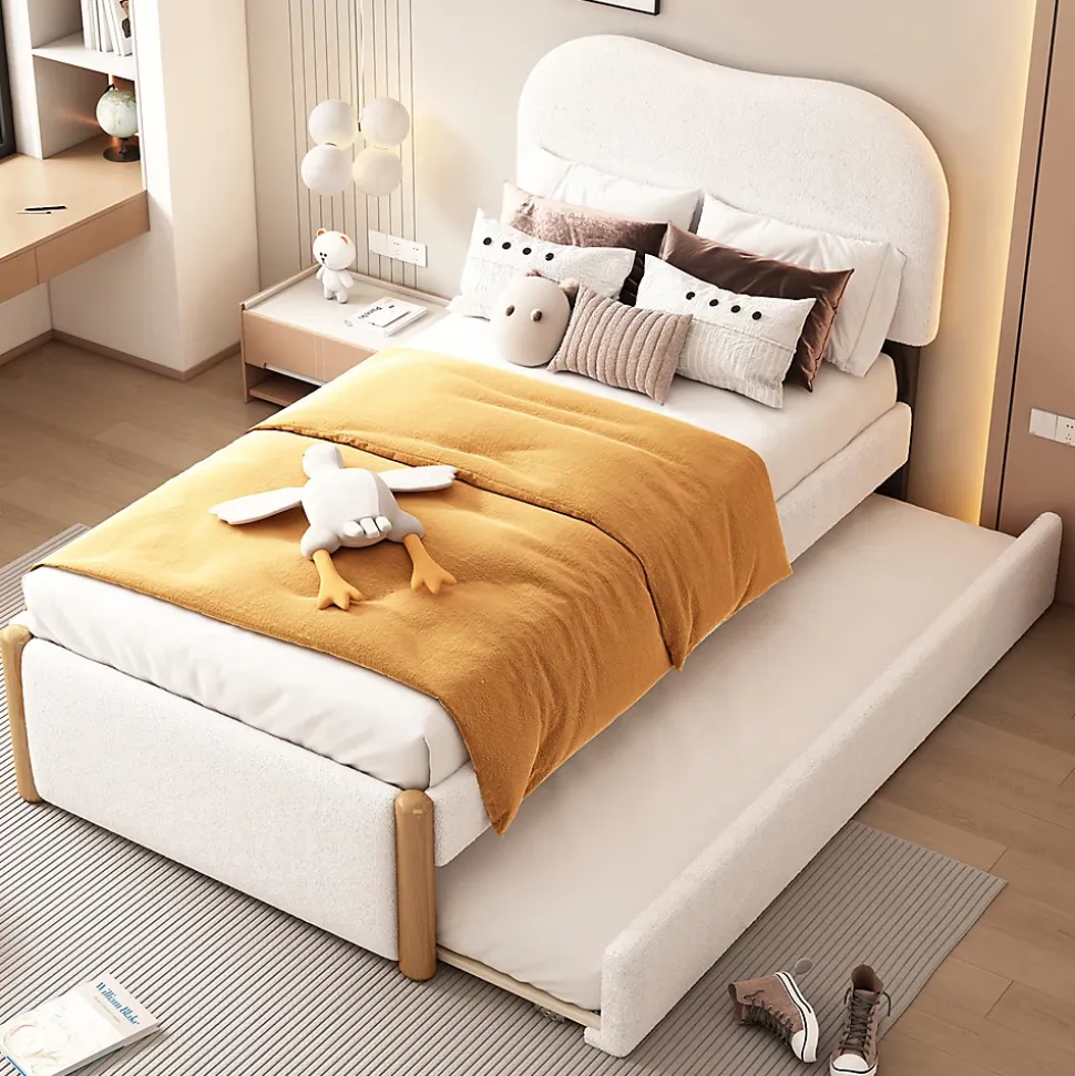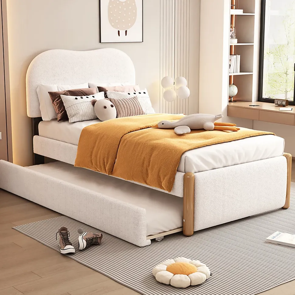 Dimensions totales :201x91x119cm(LxLxH)Capacité de charge :150 kgCouleur :blancMatériau :Peluche+Panneau composite de fibres de bois à densitéNombre de paquets : 2Poids net :35.00kgMontage nécessaire : OuiMatelas inclus : NonMatériaux de haute qualité:Ce lit est fabriqué en polaire de haute qualité et en Panneau composite de fibres de bois à densité, ce qui le rend confortable et doux au toucher et lui confère la plus grande chaleur.Style simple et élégant:Le design général du lit est simple et élégant avec des lignes douces, ce qui correspond à la tendance esthétique des maisons modernes. La tête de lit blanche avec des décorations en bois à l’extrémité du lit souligne la beauté des détails et donne à l’ensemble de la chambre un aspect chaleureux et douillet.Lit gigogne pratique:Ce lit est équipé d’un lit gigogne extractible qui peut être installé à gauche ou à droite, ce qui permet aux utilisateurs de faire des ajustements flexibles en fonction de leurs besoins. Que vous montiez et descendiez du lit du côté gauche ou du côté droit, il est facile à manipuler et augmente la commodité et le confort du lit.Facile à installer:Des instructions détaillées et des pièces complètes peuvent vous aider à terminer l’installation rapidement. Le plaisir de l’installation vous permet d’apprécier encore plus le lit.Le lit est expédié en deux colis depuis l’Allemagne, parfois les colis arrivent à des dates différentes, mais aussi pour s’assurer que vos attentes sont satisfaites, s’il vous plaît soyez patient ou contactez notre service clientèle amical.Remarques:En raison des mesures manuelles, une erreur de 2 à 3 cm peut se produire.En raison de la lumière, il peut y avoir des différences de couleur entre l’image du produit et le produit réel.Veuillez vous référer au produit que vous avez réellement reçu.