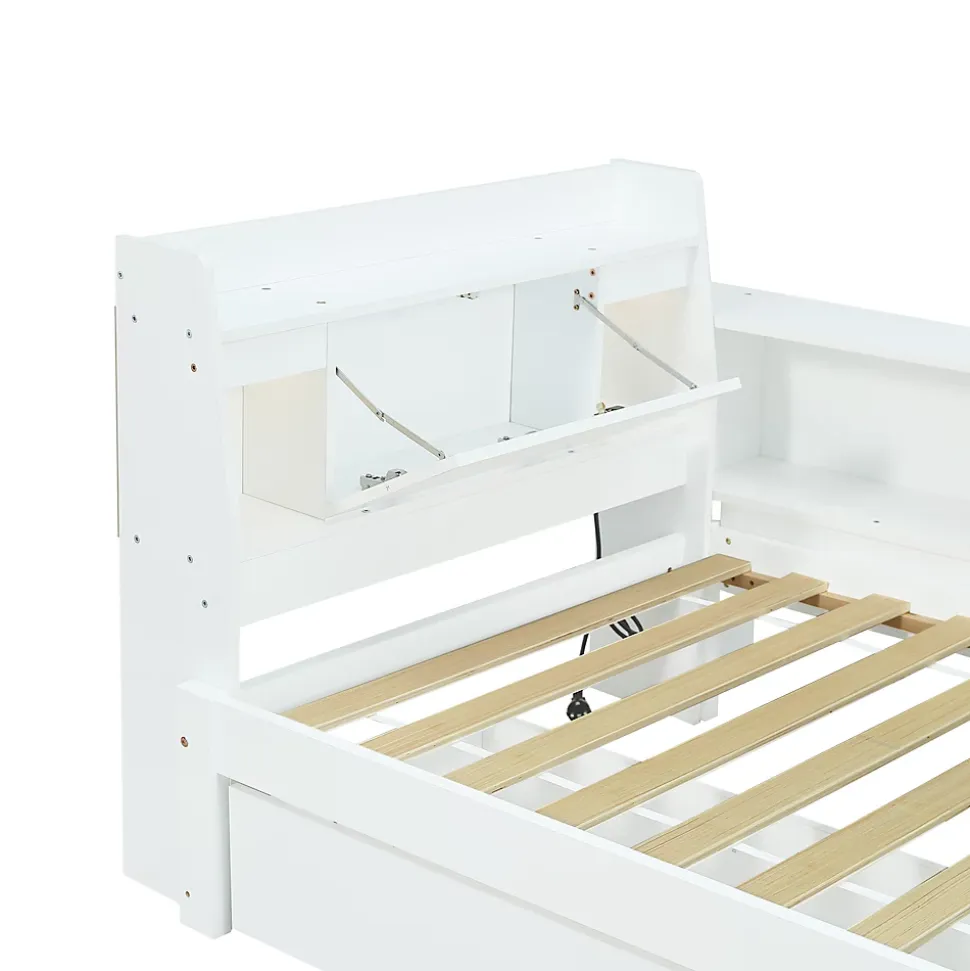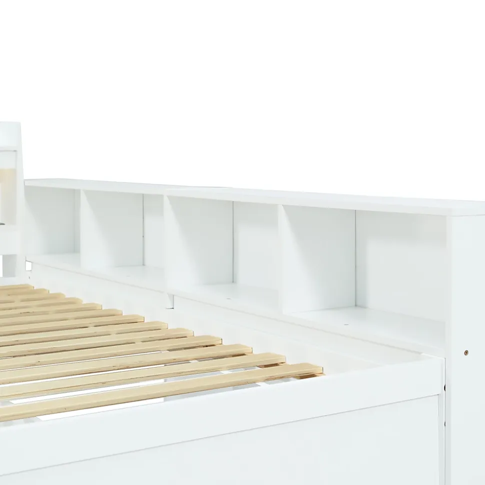 1. Genauen Mesure: Avec la taille de 90 x 200 cm, le lit simple offre suffisamment d’espace pour une personne et s’inscrit dans différentes dispositions de chambre.2. Matériaux stables: fabriqués en pin, contreplaqué et participation, le lit garantit une longue durée de vie et une capacité de chargement fiable.3. Design moderne et élégant: le cadre de lit blanc et simple apporte une atmosphère élégante dans votre chambre et s’adapte à différents styles d’ameublement.4. Jouez des fonctions de stockage: la tête de lit avec un compartiment de rangement et les placards latéraux ainsi que deux grands tiroirs offrent beaucoup d’espace de stockage pour organiser des objets personnels et garder la pièce bien rangée.5. Combinaison de confort et de fonctionnalités: ce lit unique augmente non seulement le confort de sommeil, mais a également une prise de charge, les propriétés pratiques et élégantes dont la mobilisation de toute l’atmosphère de votre chambre.6. Installation: les instructions détaillées et les pièces complètes peuvent vous aider à terminer l’assemblage. Le plaisir de l’installation vous fait encore plus apprécier le lit.Dimensions totales : 220,5x113x80 cmPoids total : 53 kgMatelas compatible (matelas non inclus) : 90×200 cm (épaisseur du matelas ≤ 12 cm)Capacité de charge : Lit : 120 kgCaractéristiques :Nom du produit : Lit en boisCouleur : BlancMatériau du cadre : Pin + Panneau de particules + MDFMatériau du sommier : ContreplaquéMéthode de montage : À monter soi-mêmeCertificat : OuiLa structure est-elle interchangeable de gauche à droite ? NonNombre de colis : 3Pays d’origine : ChineNote : Ce produit est livré en 3 colis, il est normal de recevoir les colis à des moments différents, veuillez patienter.