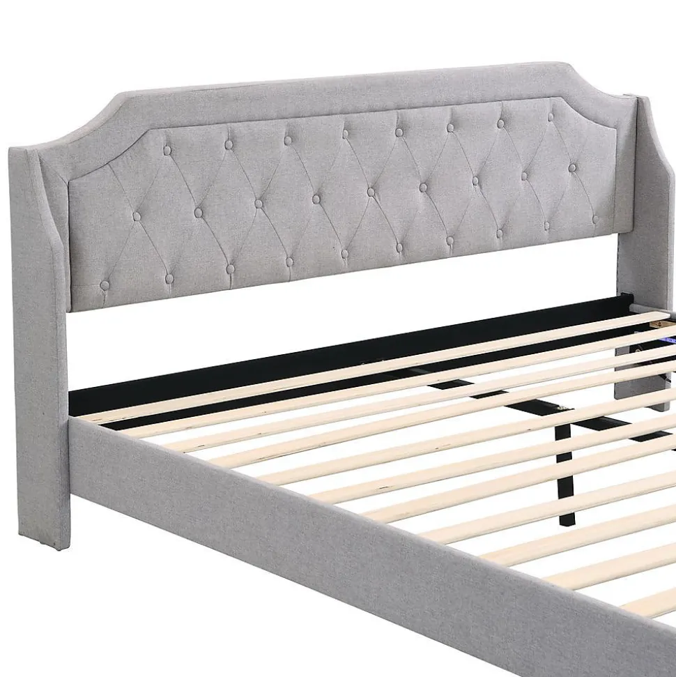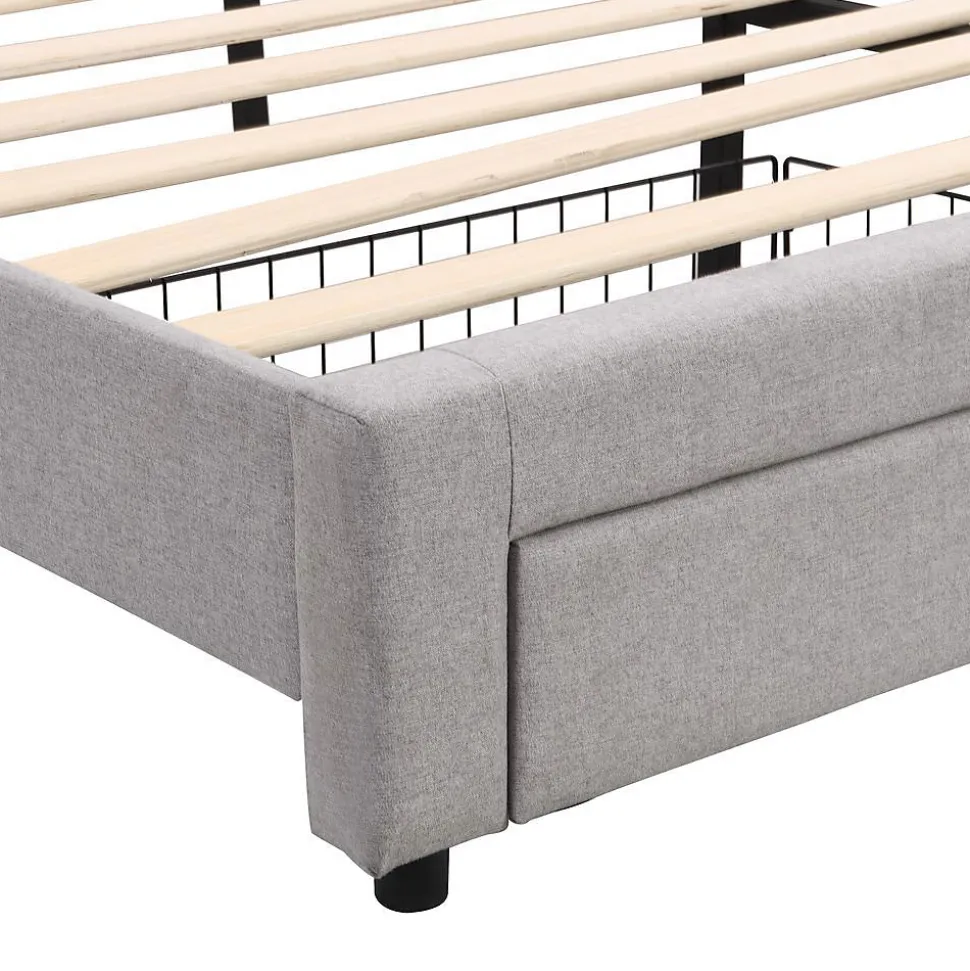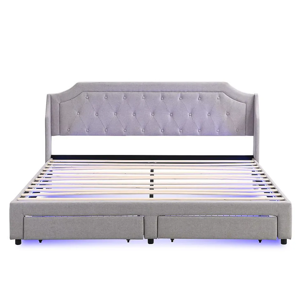 Lit double LED 180×200 cm – Lin grisFonctionnalités premium :Éclairage LED : Ambiance lumineuse réglable par télécommandeRangement pratique : 2 tiroirs coulissants intégrésConfort optimal : Tête de lit rembourrée hauteStructure robuste : Sommier à lattes bois (300 kg max)Détails techniques :Dimensions : 180×200 cmLivraison : 2 colis (27kg + 28.2kg)Montage : ~40 minutes (notice incluse)Idéal pour : Chambres d’ado ou adultes modernes.