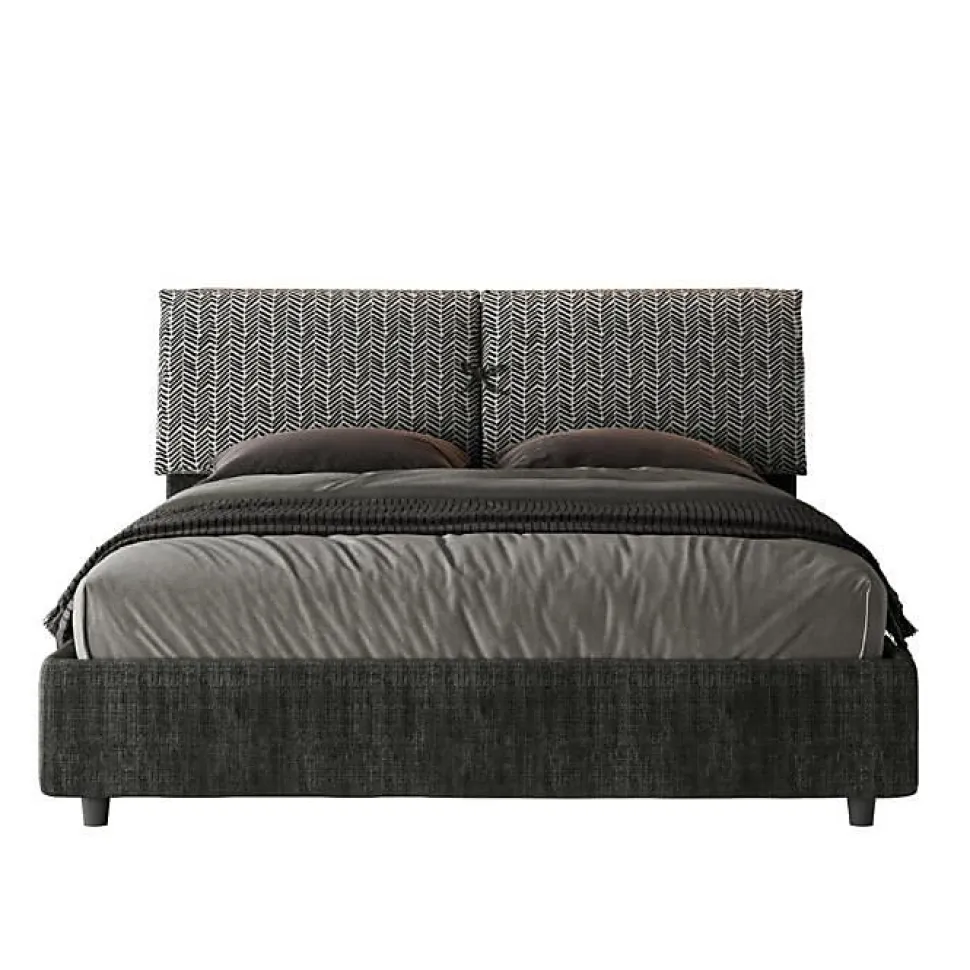 Lit double Mados 160×190 avec tête de lit et lit rembourrés, revêtement en tissu, particulièrement polyvalent et facilement combinable avec n’importe quel style d’ameublement.Le lit double Mados 160×190 se caractérise par un style élégant et raffiné grâce aux grands coussins de la tête de lit, il est entièrement recouvert de tissu.Un lit qui donnera une touche d’élégance à votre espace nuit, sans passer inaperçu, grâce aux caractéristiques distinctives de son revêtement en tissu.Lit fourni sans sommier, prévu pour sommier 160×190 h.4 cm et matelas 160×190 cm – Matelas non inclusCouvre-lit entièrement déhoussable.Produit ItyhomeFabriqué en ItalieDimensions lit : L.175 P.202 H.110 cmHauteur des pieds : 12 cmHauteur du lit : 27 cmHauteur du lit depuis le sol : 39 cm