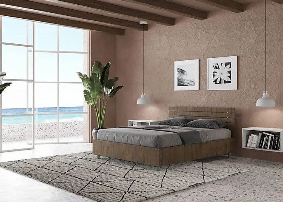 Lit français 140×200 Ankel avec tête de lit et lit en panneaux de mélamine, particulièrement polyvalent et facilement combinable avec n’importe quel style d’ameublement.Le lit français Ankel 140×200 se caractérise par un style minimal et essentiel grâce aux surfaces simples et linéaires.La combinaison du style et des matériaux utilisés pour la structure confère à la pièce une atmosphère chaleureuse et accueillante, typique du bois.Lit fourni sans sommier, prévu pour sommier 140×200 h.4 cm et matelas 140×200 cm – Matelas non inclusProduit ItyhomeFabriqué en ItalieDimensions lit : L.147 P.209 H.91 cmHauteur des pieds : 12 cmHauteur du lit : 26 cmHauteur du lit depuis le sol : 38 cm