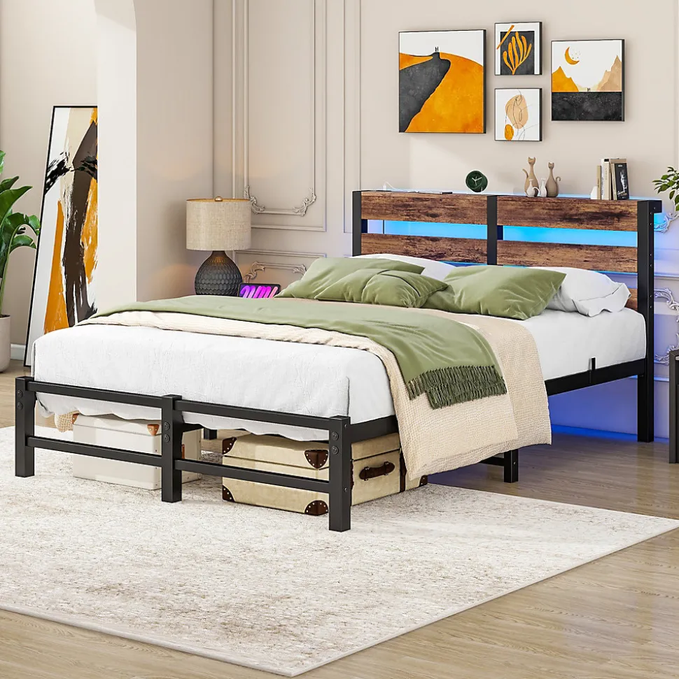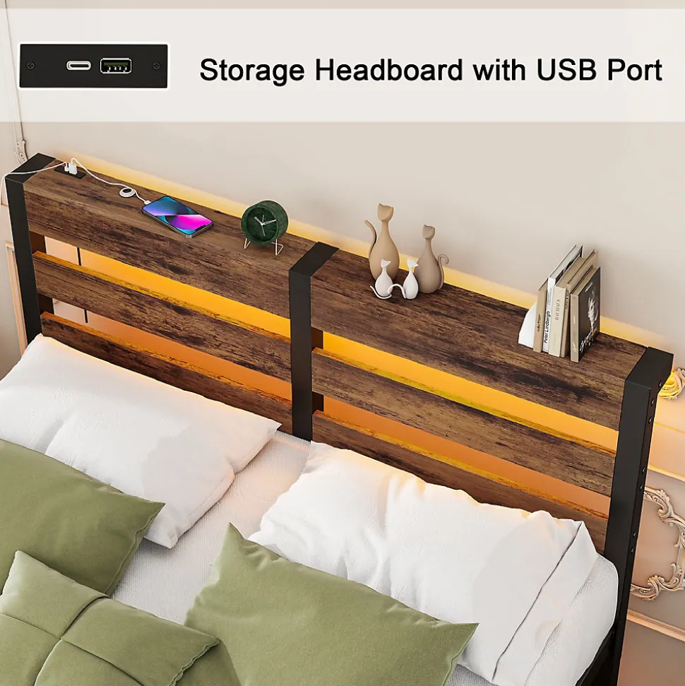 - 【Station de charge intégrée】 Le cadre métallique dispose de 2 ports USB, vous permettant de charger smartphone, tablette ou casque directement au lit, facilitant détente et sommeil sans vous soucier des batteries.