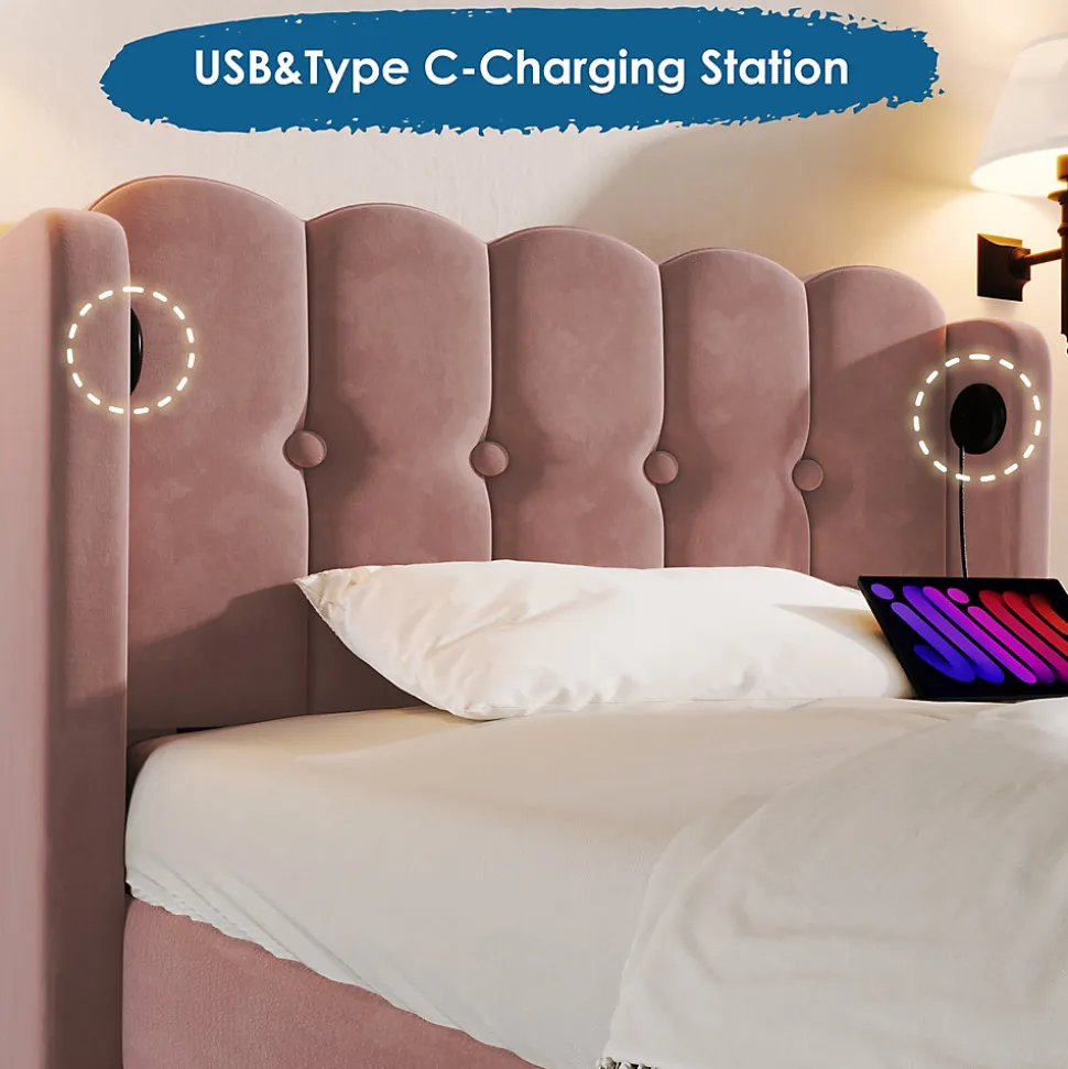 - 【Charge pratique et intégrée】 Les ports USB et Type-C intégrés sur les côtés de la tête de lit permettent de charger vos appareils électroniques directement depuis votre lit. Plus besoin de vous lever pour brancher votre smartphone ou votre tablette, vous économisez ainsi du temps et de l’énergie.