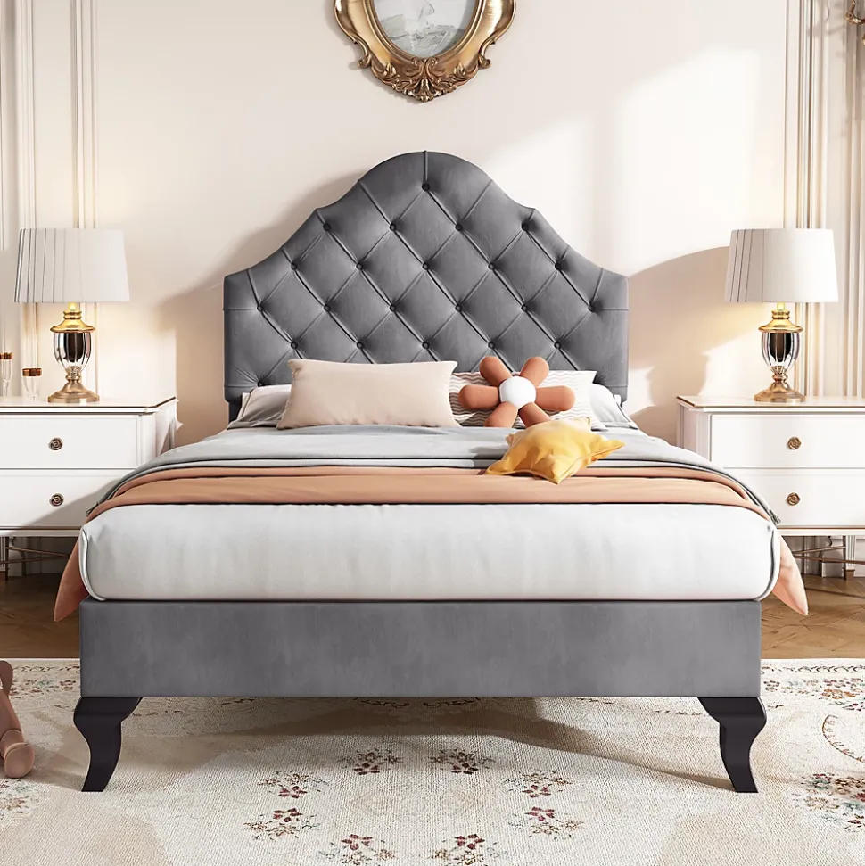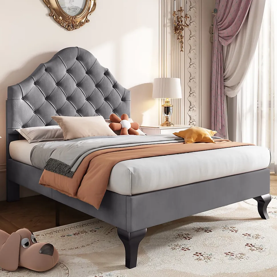 - 【Design intemporel】Ce lit en tissu rembourré combine un style classique et moderne grâce à son tête de lit capitonnée, offrant un point d’appui confortable pour lire ou regarder la télévision, tout en ajoutant une élégance subtile à votre chambre.